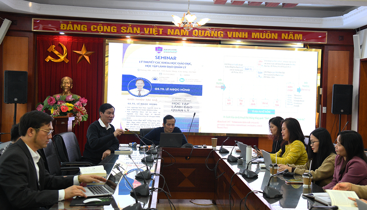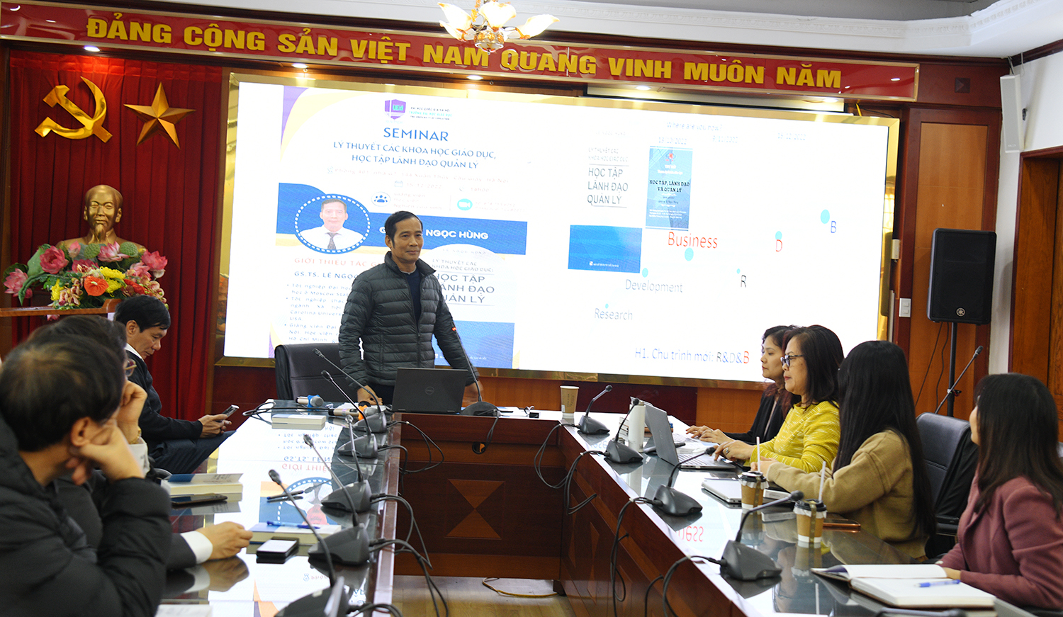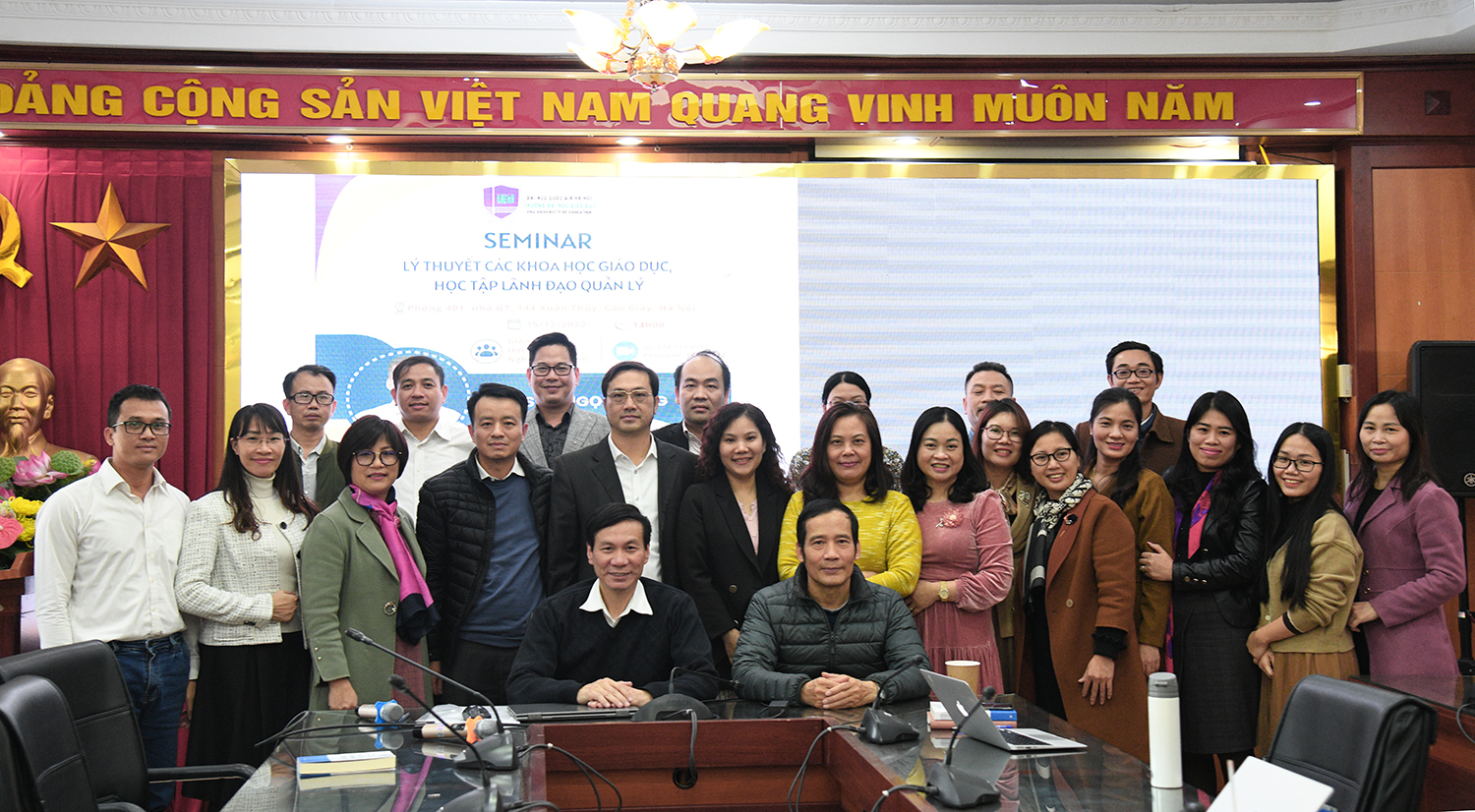 Seminar được tổ chức theo hình thức trực tiếp và trực tuyến. Tham dự có Hiệu trưởng GS.TS. Nguyễn Quý Thanh, các Phó Hiệu trưởng PGS.TS. Phạm Văn Thuần, PGS.TS. Nguyễn Thị Hương, TS. Nguyễn Đức Huy và gần 120 nghiên cứu viên, giảng viên và nghiên cứu sinh.
