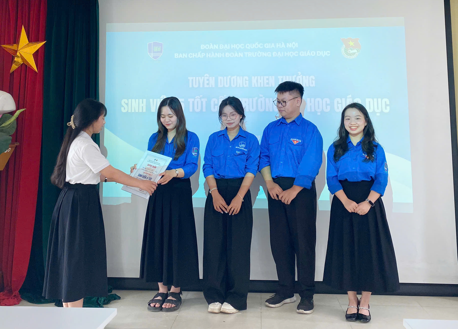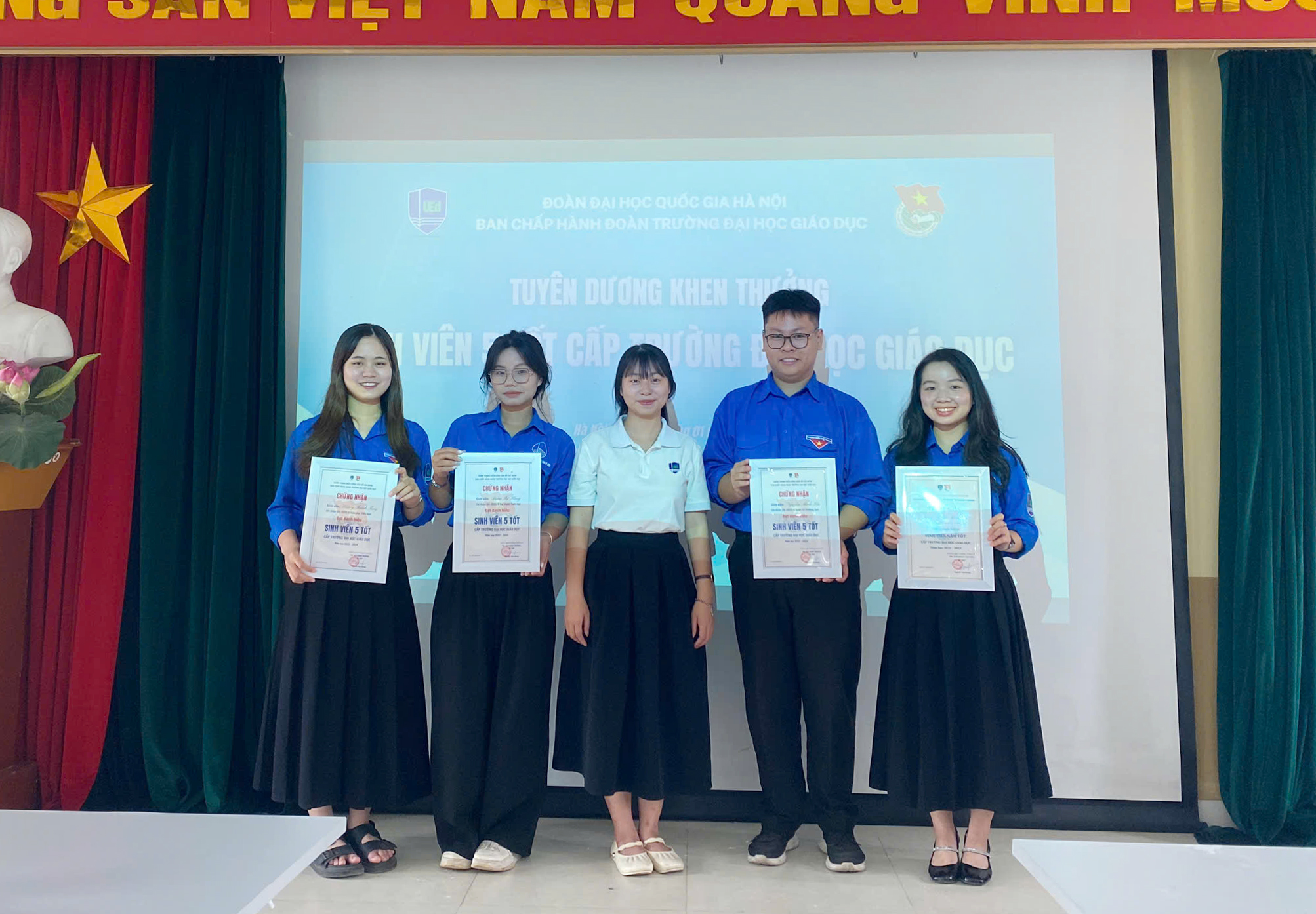 Phát biểu tại buổi lễ, đồng chí Nguyễn Văn Hưng – Bí thư Đoàn trường chia sẻ: “Danh hiệu “Sinh viên 5 tốt” không chỉ là sự công nhận cho những nỗ lực bền bỉ của các bạn sinh viên, mà còn là động lực để toàn thể sinh viên Trường Đại học Giáo dục tiếp tục phấn đấu, rèn luyện toàn diện, trở thành công dân toàn cầu trong kỷ nguyên mới. Danh hiệu hôm nay không phải là đích đến cuối cùng, mà chính là bệ phóng để các bạn tiếp tục tỏa sáng trên con đường trở thành những nhà giáo dục tương lai xuất sắc của đất nước.”