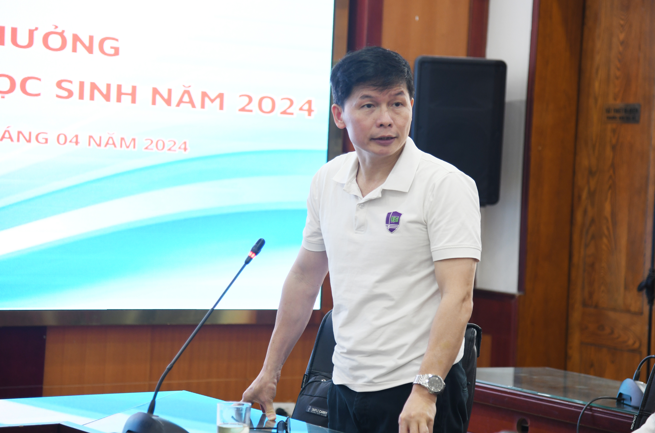 Phó Hiệu trưởng PGS.TS. Trần Thành Nam chúc mừng và ghi nhận những đóng góp của thầy và trò đoàn sinh viên tham dự Olympic Toán học học sinh sinh viên năm 2024
