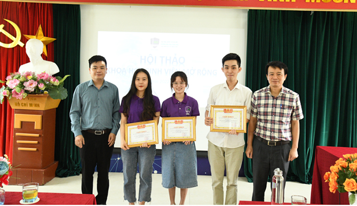 Bên cạnh đó, các sinh viên và nhóm sinh viên của Trường Đại học Sư phạm Đà Nẵng và sinh viên Trường Đại học Sư phạm Hà Nội có đề tài nghiên cứu xuất sắc tham gia trình bày báo cáo tại Hội thảo cũng nhận được giấy chứng nhận của Nhà trường