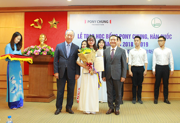 Quỹ học bổng Pony Chung năm học 2018-2019 đã trao 30 suất học bổng cho sinh viên ĐHQGHN, trị giá mỗi suất học bổng là 500 USD/1sinh viên/1 năm học.