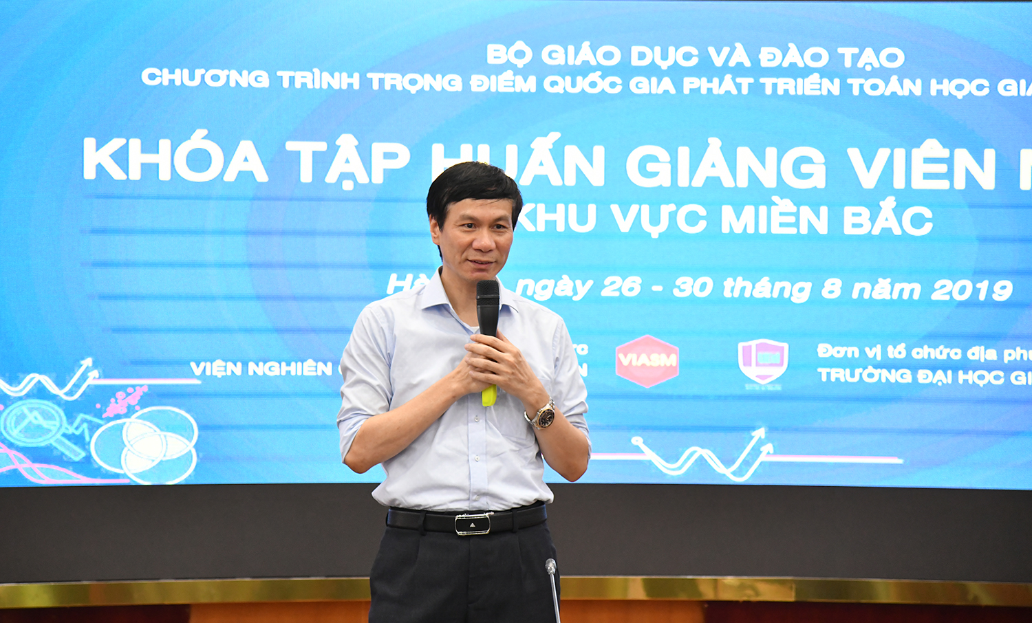 Thay mặt Ban điều hành Chương trình trọng điểm Quốc gia Phát triển toán học giai đoạn 2010-2020, PGS.TS Lê Minh Hà Giám đốc điều hành Viện Nghiên cứu Cao cấp về Toán phát biểu khai khai mạc. PGS.TS Lê Minh Hà cảm ơn Trường Đại học Giáo dục với vai trò là đơn vị tổ chức địa phương đã nhiệt tình, tạo mọi điều kiện thuận lợi và cùng với Viện Nghiên cứu Cao cấp về Toán tổ chức Khóa tập huấn dành cho giảng viên tại miền Bắc.