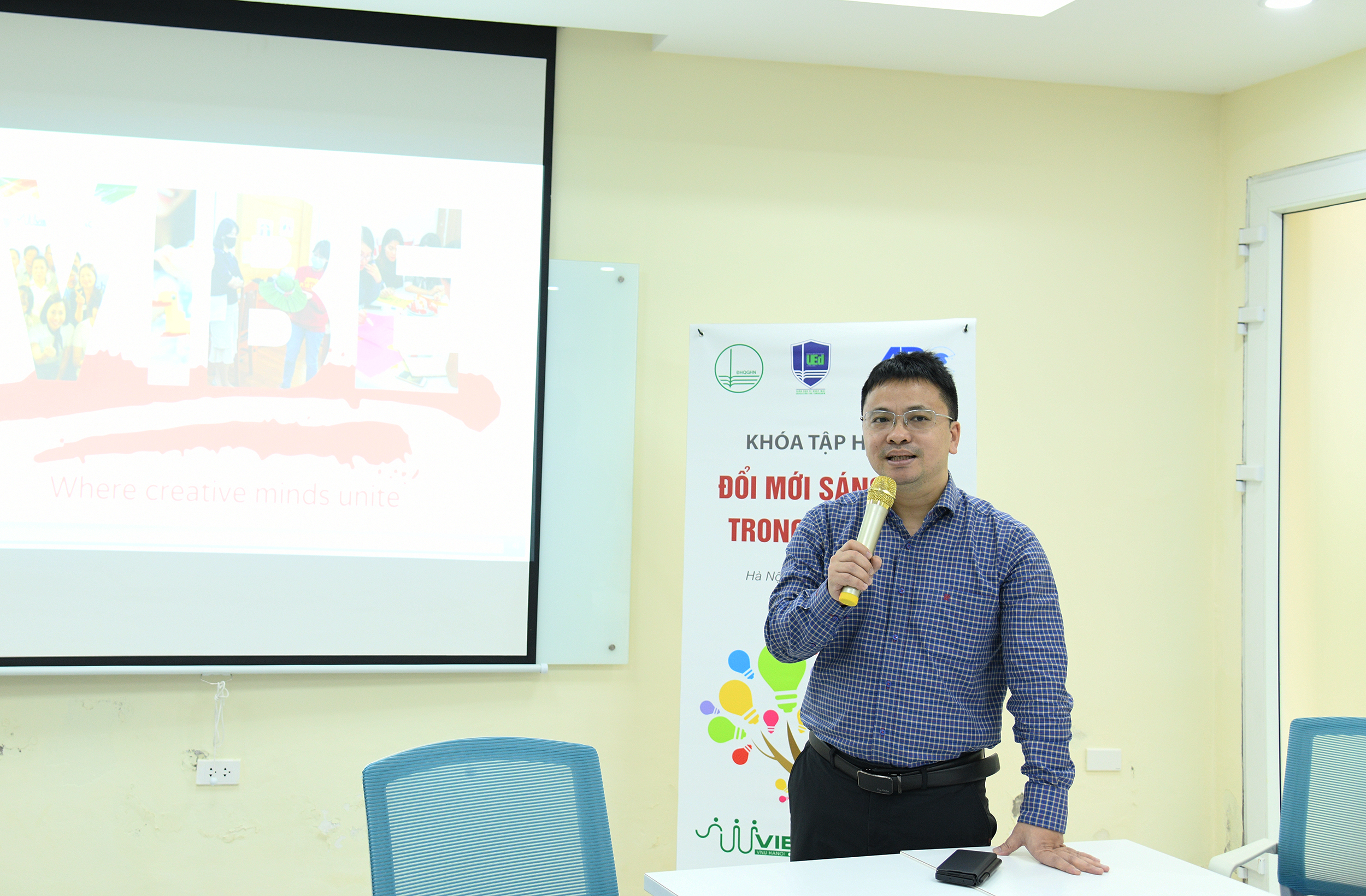 Phát biểu khai mạc khoá tập huấn PGS.TS. Lê Thái Hưng – Trưởng phòng Tổ chức - Cán bộ thay mặt lãnh đạo Nhà trường bày tỏ vui mừng và cảm ơn nhóm giảng viên VIBE đã giành thời gian, tâm sức để thiết kế khoá học phù hợp cho các đối tượng là cán bộ và giảng viên của Trường Đại học Giáo dục. PGS.TS. Lê Thái Hưng đánh giá cao những giá trị đổi mới sáng tạo mà VIBE đã tạo dựng và lan toả trong gần 5 năm thực hiện dự án.