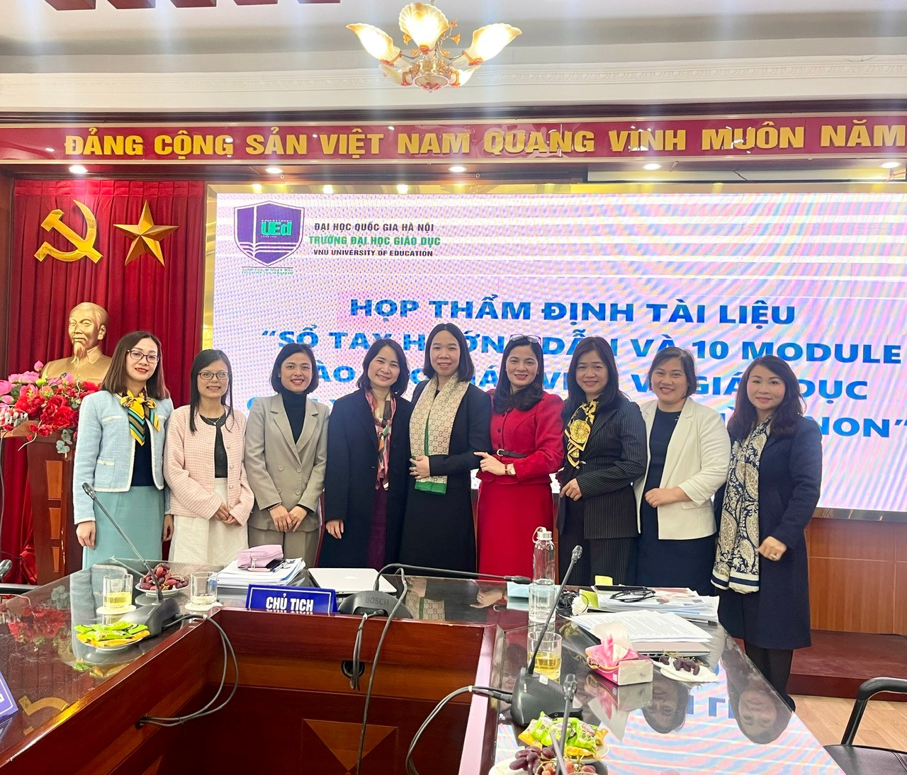 Kết luận buổi họp, Chủ tịch Hội đồng - TS.Chu Thị Hồng Nhung cảm ơn các ý kiến đóng góp của các thành viên Hội đồng, một lần nữa đề cao mức độ quan trọng của bộ tài liệu và mong muốn có thể sớm đưa bộ tài liệu vào ứng dụng tại Trung tâm Hợp tác Đào tạo và Bồi dưỡng - Trường Đại học Giáo dục và tại các cơ sở giáo dục của Việt Nam.