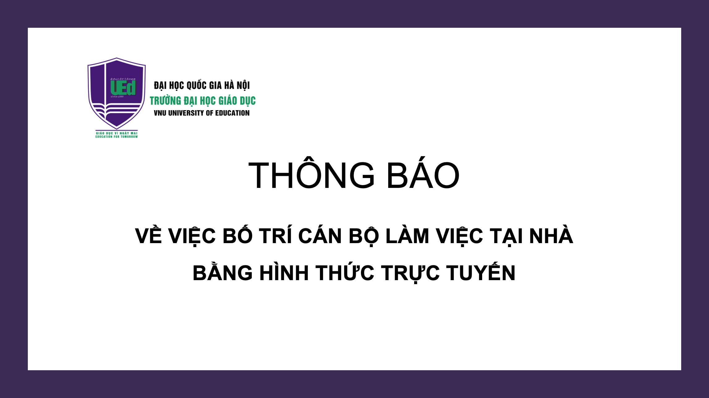 Trường Đại học Giáo dục trân trọng thông báo tới các cán bộ, công chức, viên chức và người lao động để biết và thực hiện.