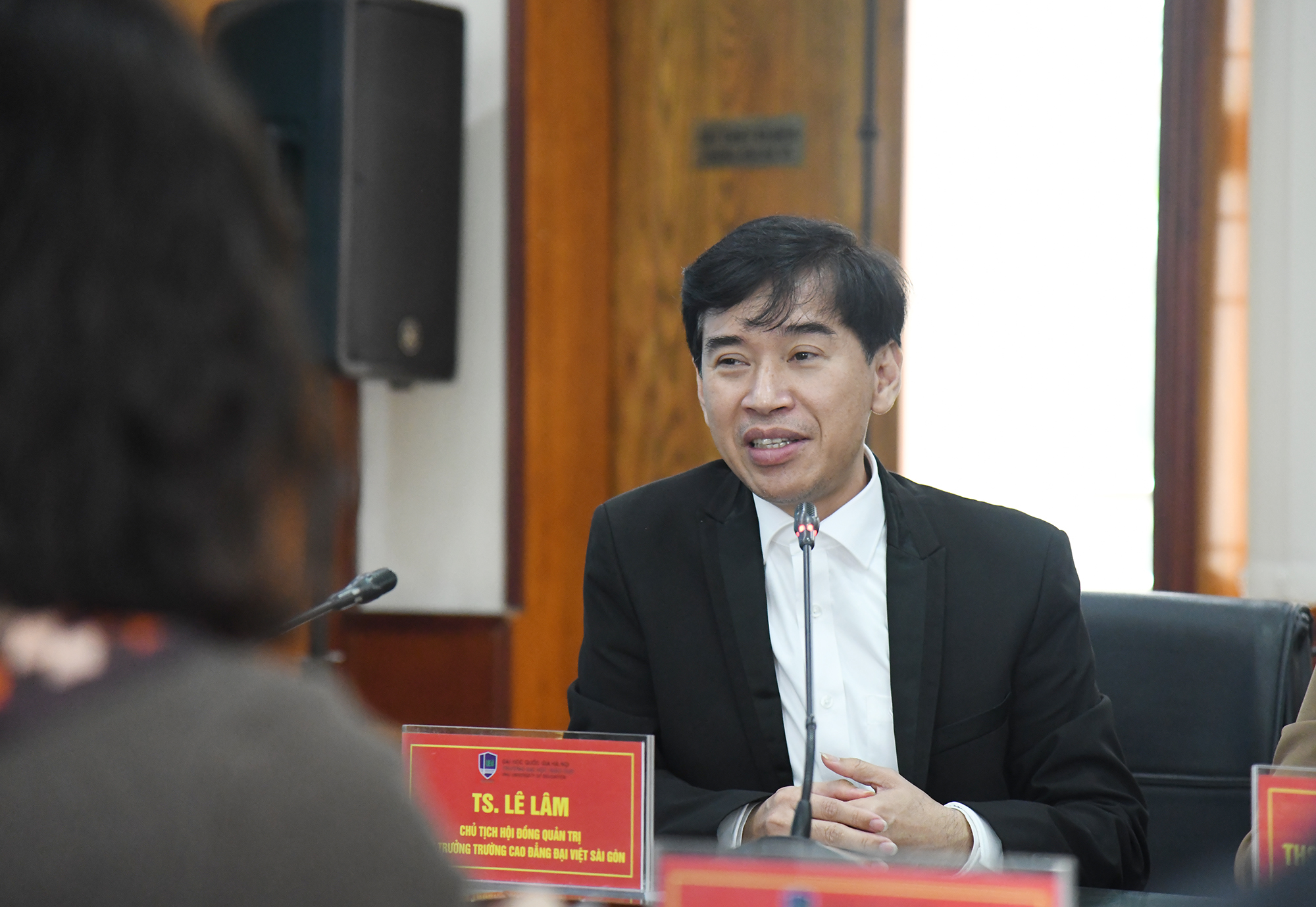 Chia sẻ tại buổi gặp mặt, TS. Lê Lâm cảm ơn Trường Đại học Giáo dục đã hợp tác với Hệ thống giáo dục Đại Việt trong suốt thời gian qua. Nhận thấy được năng lực và tâm huyết của các thầy cô Trường Đại học giáo dục, TS. Lê Lâm khẳng định mong muốn tiếp tục cùng Trường Đại học Giáo dục triển khai sâu rộng hơn về các ngành học liên quan đến chuyển đổi số. Đồng thời, Hệ thống giáo dục Đại Việt sẽ đồng hành về nhân lực, vật lực cùng Trường Đại học Giáo dục trong suốt quá trình hợp tác.