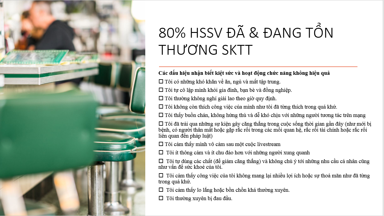 Về phía sinh viên cần tạo lập lại lịch trình sinh hoạt mới: giảm tải các hoạt động online, thiết lập lịch sinh hoạt phù hợp; Cập nhật các thông tin liên quan đến việc trở lại trường như một sự lên dây cót tinh thần; Có các công cụ để nhận diện sớm các dấu hiệu tổn thương SKTT; Tự nhủ tích cực; Tham gia các hoạt động CLB, sinh hoạt ngoại khóa của Đoàn – Hội SV; Tăng cường thể chất, tâm thế tự tin và tự kiểm soát cảm xúc, rèn luyện năng lực tập trung chú ý, tư duy phản biện và tái thiết các liên hệ với bạn bè, kỹ năng giao tiếp, xử lý vấn đề.