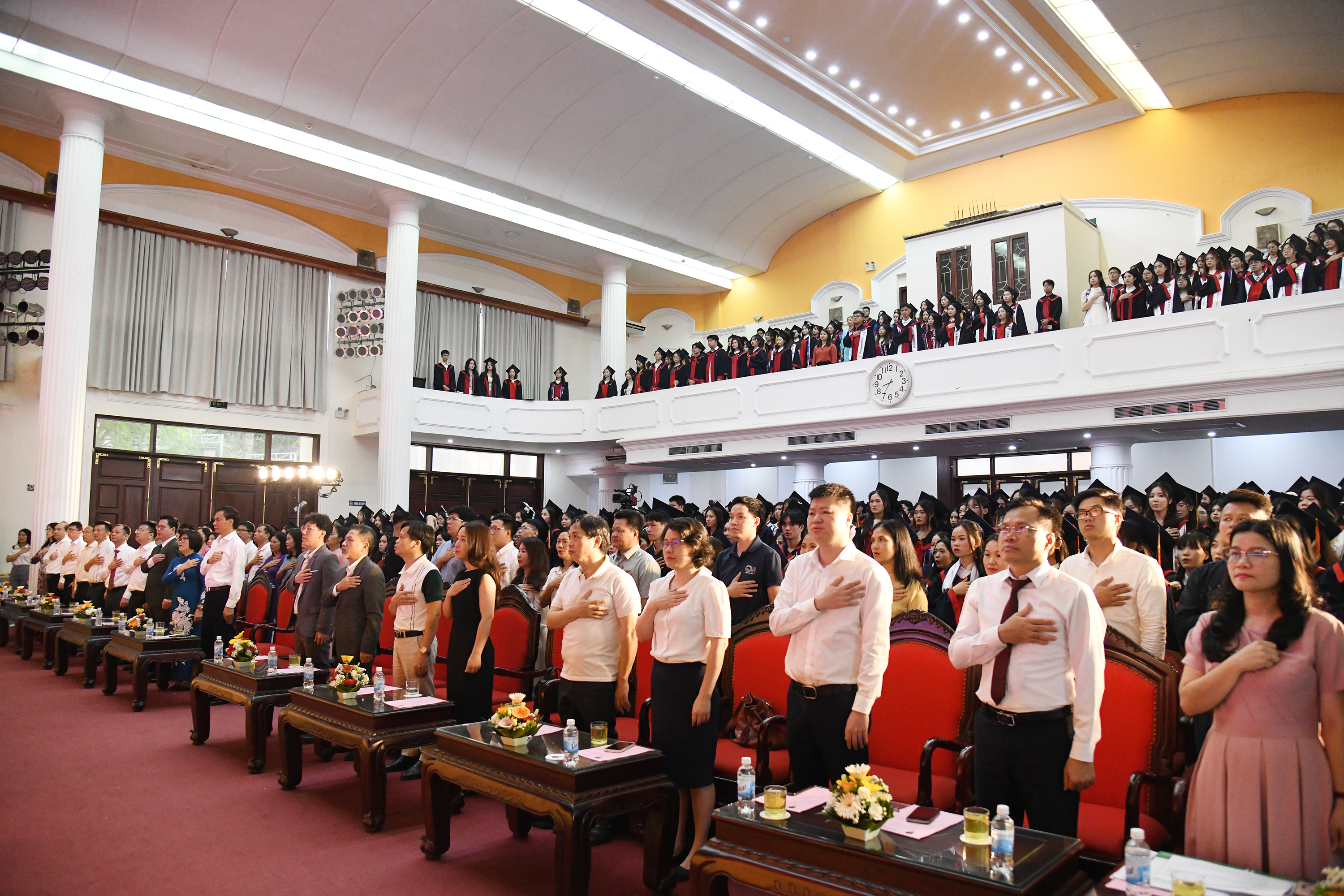Tham dự buổi lễ có Chủ tịch Hội đồng trường PGS.TS. Nguyễn Thị Hương, Hiệu trưởng GS.TS.NGUT. Nguyễn Quý Thanh, các Phó Hiệu trưởng PGS.TS. Lê Thái Hưng, PGS.TS. Trần Thành Nam, TS. Nguyễn Bá Ngọc cùng toàn bộ cán bộ, giảng viên, đại diện các đơn vị đối tác và hơn 500 tân cử nhân của Nhà trường.