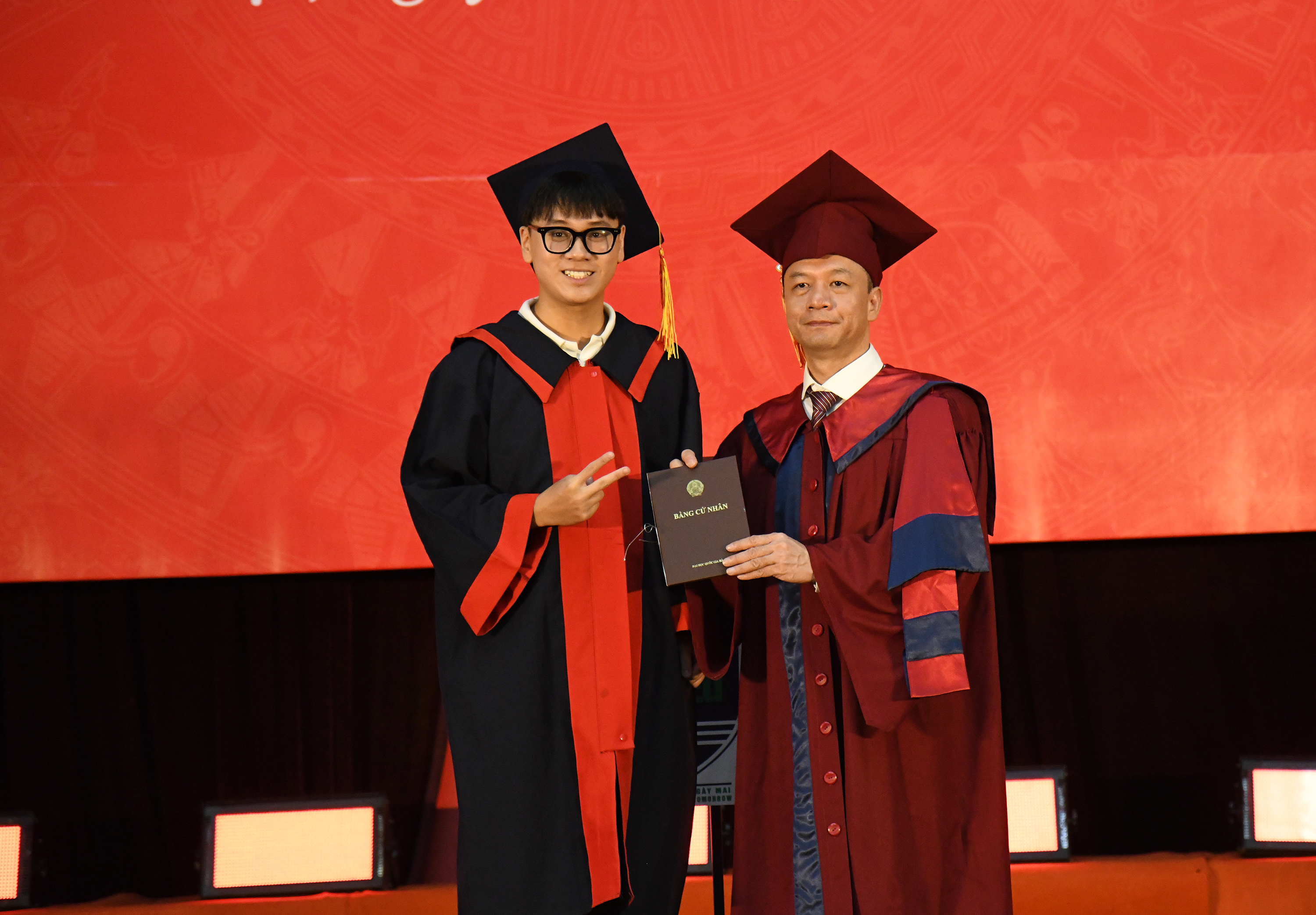 Ban Giám hiệu trao bằng cho tân cử nhân đạt thành tích xuất trong toàn khóa học