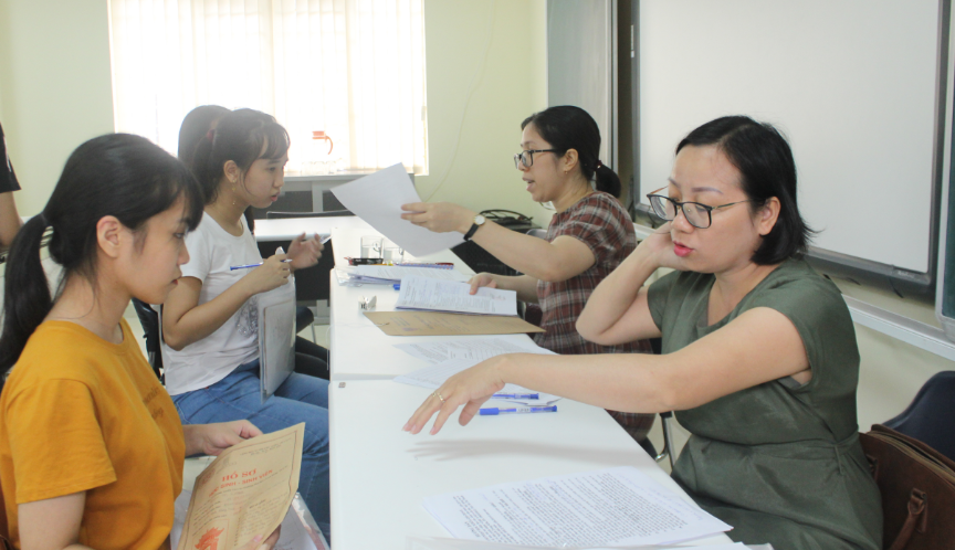 Các cán bộ, giảng viên được huy động tối đa giúp công tác chào đón và tiếp nhận hồ sơ được diễn ra thuận lợi.