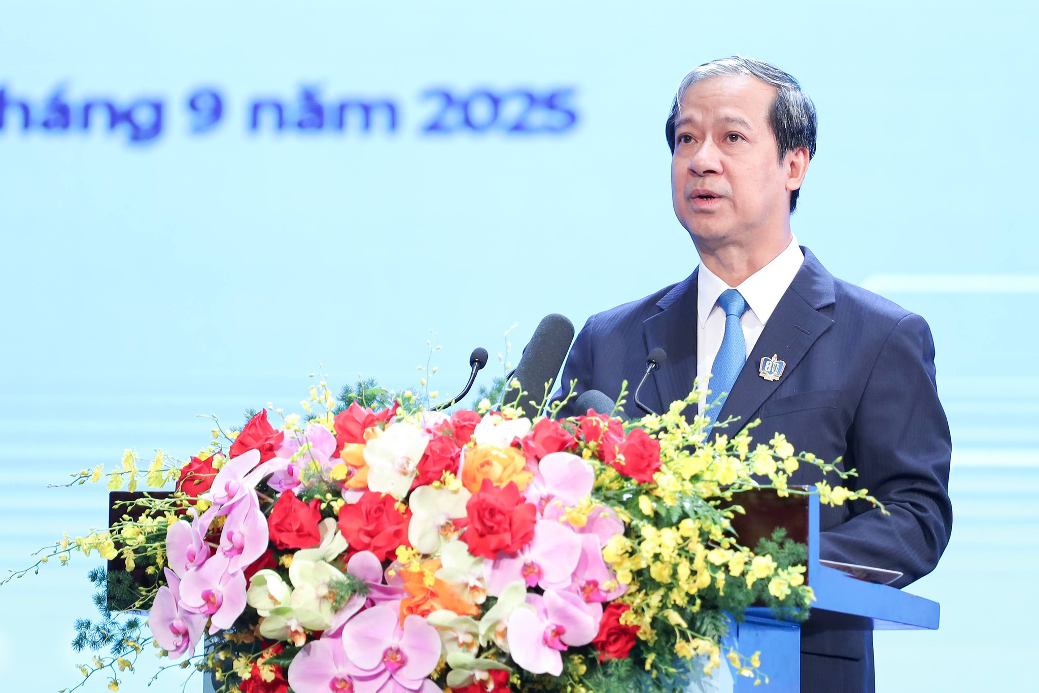 Bộ trưởng Nguyễn Kim Sơn trình bày diễn văn tại Lễ Kỷ niệm 80 năm truyền thống ngành giáo dục gắn với Khai giảng năm học 2025 - 2026 tại Trung tâm Hội nghị Quốc gia