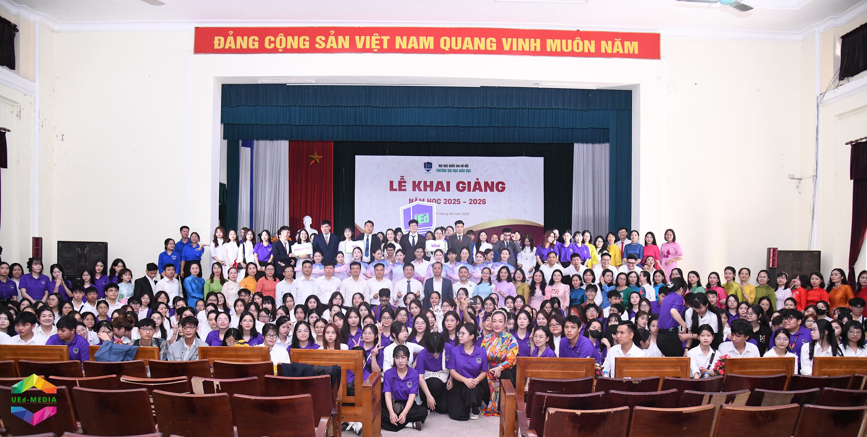 Lễ khai giảng năm học 2025–2026 của Trường Đại học Giáo dục – ĐHQGHN đã khép lại trong bầu không khí hân hoan, tràn đầy niềm tin và khát vọng. Đây không chỉ là sự kiện đánh dấu khởi đầu một năm học mới, mà còn là lời khẳng định mạnh mẽ về trách nhiệm, bản lĩnh và khát vọng tiên phong của Nhà trường trong sự nghiệp “trồng người”. Từ tiếng trống khai giảng ngân vang hôm nay, hành trình tri thức mới được mở ra, mang theo niềm tin rằng Trường Đại học Giáo dục – ĐHQGHN sẽ tiếp tục đổi mới, sáng tạo và hội nhập, góp phần đưa giáo dục Việt Nam vững bước vào kỷ nguyên phát triển mới.