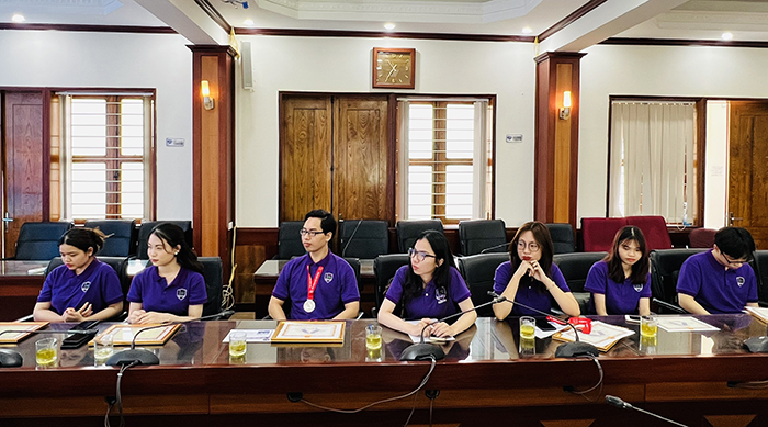 Đại diện nhóm sinh viên tham dự trong Kỳ thi Olympic Toán học sinh viên và học sinh toàn quốc năm 2023, sinh viên Phạm Công Minh khoá QH-2020-S phát biểu cảm ơn các Thầy/cô là giảng viên hướng dẫn đã dành nhiều thời gian, tâm sức để nghiên cứu và truyền đạt kiến thức cho sinh viên; sinh viên Phạm Công Minh cũng cảm ơn Khoa Sư phạm và Nhà trường đã tạo cơ hội cho nhóm được trải nghiệm và giao lưu học hỏi với sinh viên đang theo học các ngành về Toán học.
