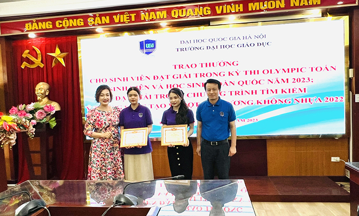 * Ngày 02-08/4/2023, Kỳ thi Olympic Toán học sinh viên-học sinh toàn quốc lần thứ 29 do Hội Toán học Việt Nam phối hợp với một số đơn vị tổ chức theo hình thức tập trung tại Trường Đại học Sư phạm Huế. Khoa Sư phạm và Bộ môn Sư phạm Toán đã thành lập được đội tuyển gồm 7 sinh viên từ năm thứ 2 đến năm thứ 4 tham dự đội tuyển Olympic Toán sinh viên Trường Đại học Giáo dục và thành quả đạt được gồm: + 01 giải Nhì môn Đại Số: sinh viên Phạm Công Minh, Khoá QH-2020-S + 01 giải Khuyến khích môn Đại Số: sinh viên Lại Minh Quang, Khoá QH-2020-S + 02 giải Ba môn Giải tích: sinh viên Nguyễn Vũ Thu An và Nguyễn Văn Long, Khoá QH-2021-S + 01 giải Khuyến khích môn Giải tích: sinh viên Phạm Công Minh, Khoá QH-2020-S * Đội 3SR – Trường Đại học Giáo dục đạt Giải Nhất trong Chương trình Tìm kiếm Ý tưởng sáng tạo vì một đại dương không nhựa. Tại vòng chung kết Chương trình Tìm kiếm Ý tưởng sáng tạo vì một đại dương không nhựa do UNESCO phối hợp với Khu dự trữ sinh quyển thế giới quần đảo Cát Bà diễn ra ngày 12/4. Nhóm sinh viên 3SR của Trường Đại học Giáo dục – ĐHQGHN gồm 3 thành viên thuộc Khoá QH-2020-S: Đoàn Hùng Mạnh ngành Sư phạm Khoa học Tự nhiên; Trần Thị Huyền Trang ngành Giáo dục Mầm non và Phạm Thị Duyên ngành Quản trị Chất lượng đã xuất sắc dành được giải Nhất. |