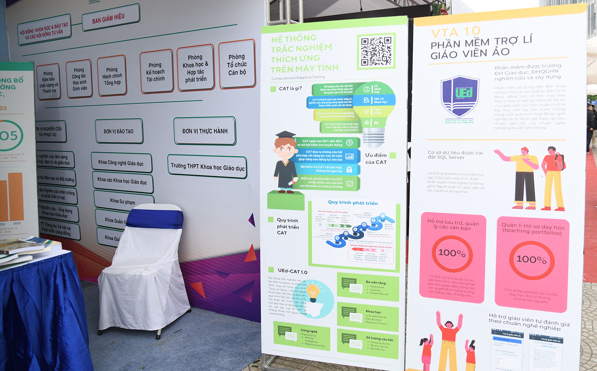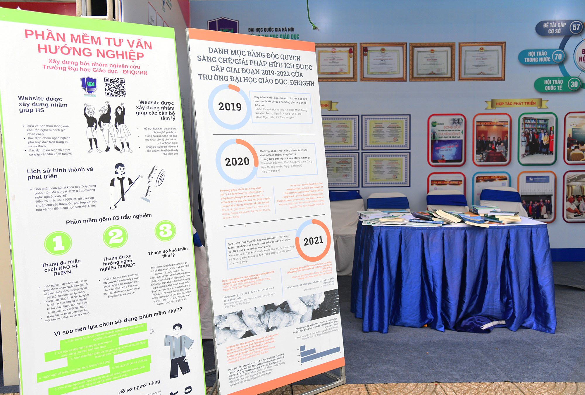 Trường ĐH Giáo dục tham gia triển lãm trưng bày các các thành tựu tiêu biểu về khoa học công nghệ của Trường, trong đó có các sản phẩm khoa học công nghệ mang tính ứng dụng cao, có khả năng chuyển giao và ứng dụng thực tế trong lĩnh vực khoa học giáo dục như: Hệ thống các phần mềm: Phần mềm tư vấn hướng nghiệp, Hệ thống trắc nghiệm thích ứng trên máy tính CAT (Computerized Adaptive Testing), Phần mềm trợ lí giáo viên ảo VTA 1.0; Trong giai đoạn từ 2019-2022, đã có nhiều bằng sáng chế và giải pháp hữu ích được cấp cho các tác giả/nhóm tác giả của Trường ĐH Giáo dục.