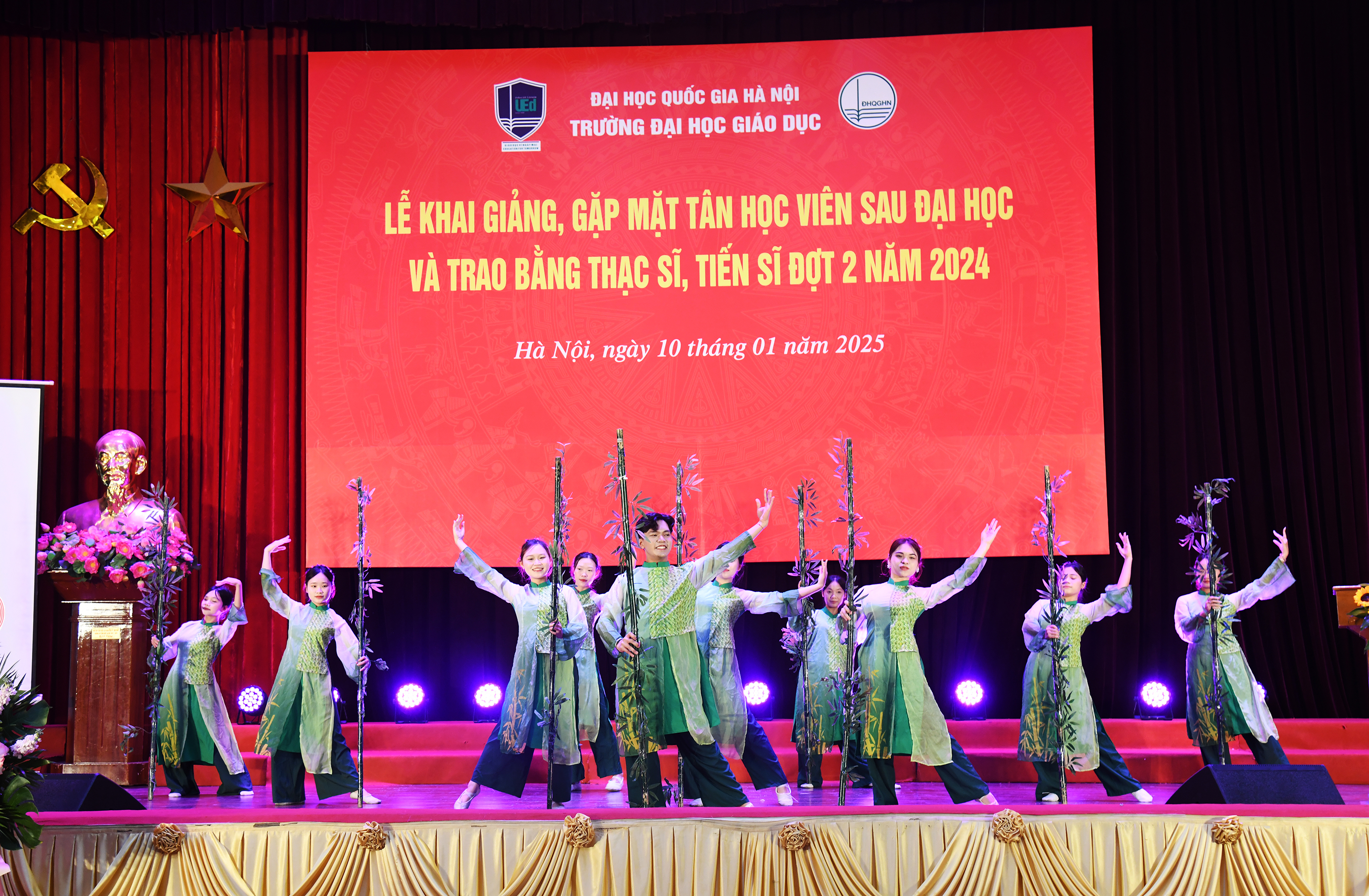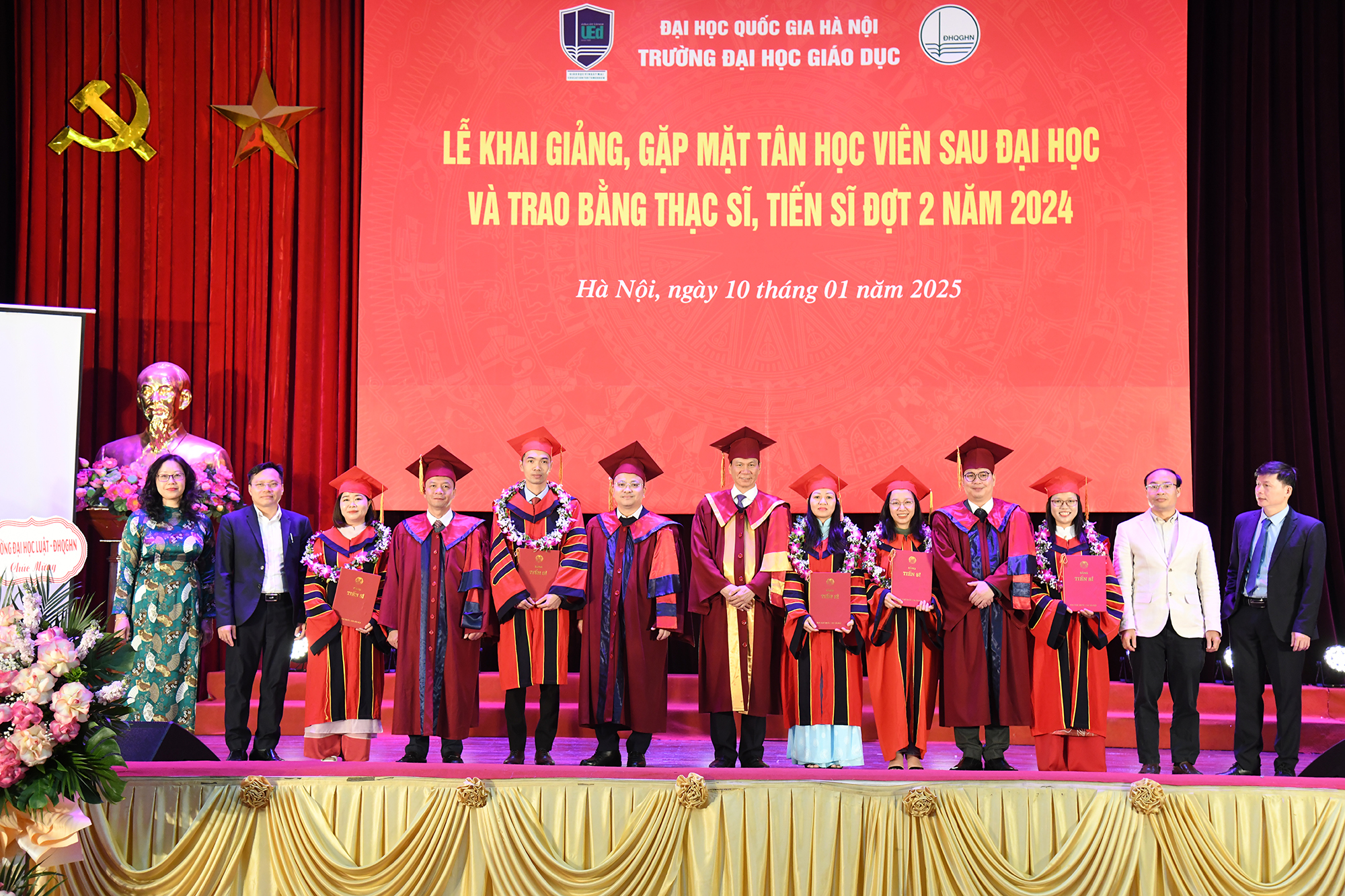Tại buổi Lễ, Trường Đại học Giáo dục đã công bố 12 nghiên cứu sinh và 421 tân học viên sau đại học xuất sắc vượt qua Kỳ tuyển sinh sau đại học đợt 2 năm 2024 và chính thức trở thành học viên khoá QH-2024-S của Trường Đại học Giáo dục; đồng thời chúc mừng 07 tân Tiến sĩ và 234 tân Thạc sĩ vinh dự được nhận bằng tốt nghiệp trong đợt 2 năm 2024.