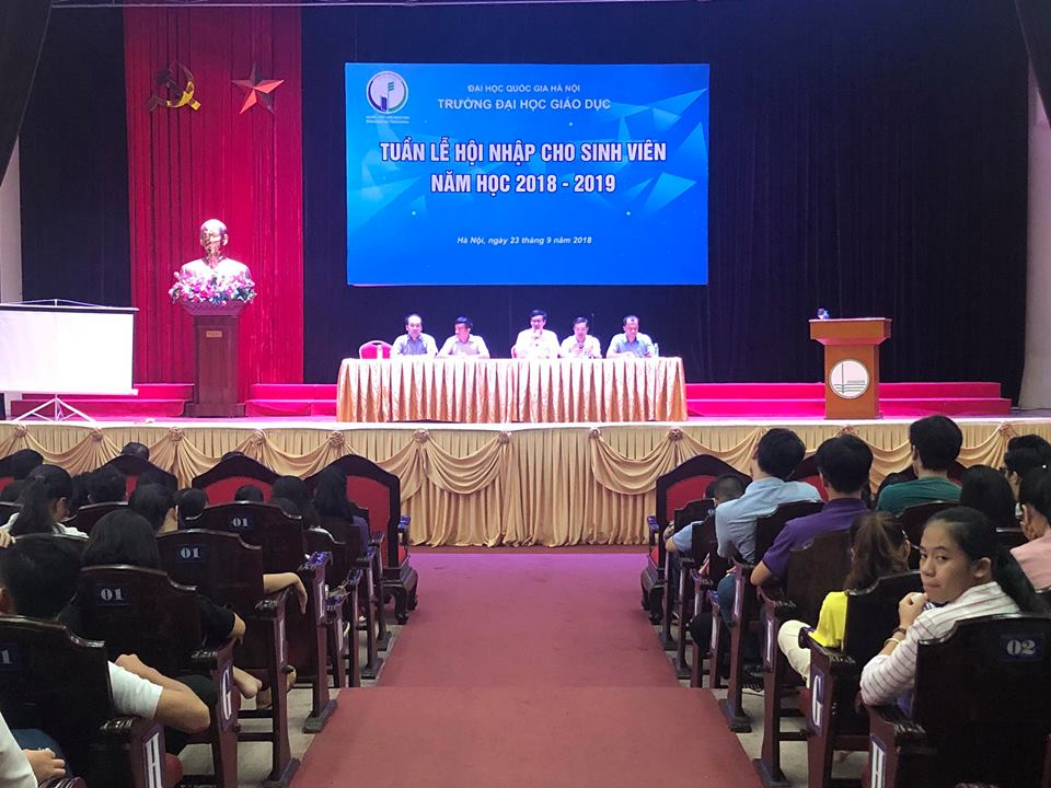 Trong thời gian diễn ra Tuần lễ Hội nhập, sinh viên được lắng nghe các Thầy/cô giới thiệu chung về ĐHQGHN, về Trường ĐH Giáo dục, lịch sử hình thành và phát triển. Phổ biến luật, quy định, quy chế, văn bản pháp quy. Học tập và làm việc theo tư tưởng Hồ Chí Minh. Tình hình chính trị, an ninh, an toàn giao thông…gắn với cá nhân và đơn vị. Giới thiệu và hướng dẫn khai thác nguồn tài liệu phục vụ học tập, nghiên cứu của Trung tâm thông tin thư viện.