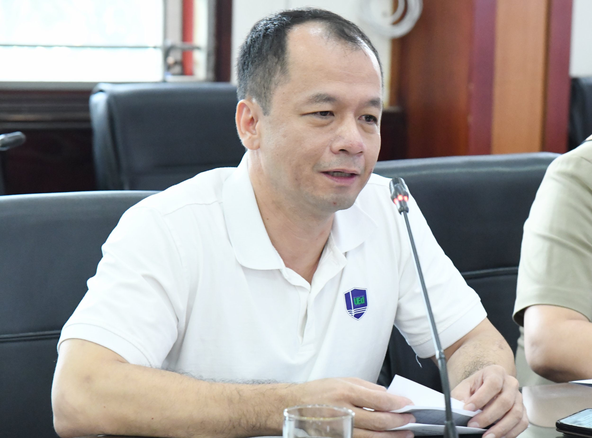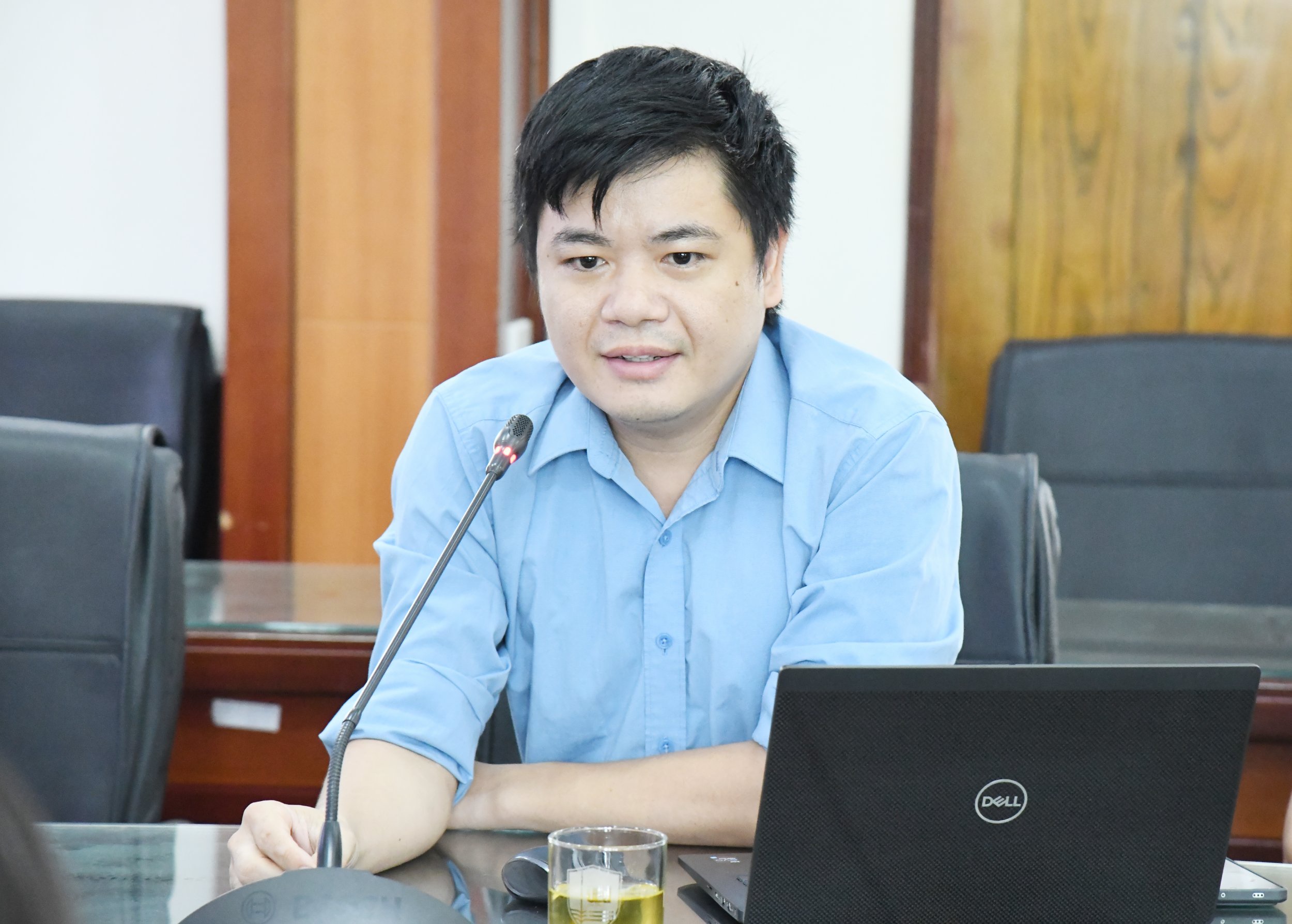 Trưởng phòng Khoa học và Hợp tác phát triển chia sẻ với sinh viên tại buổi đối thoại