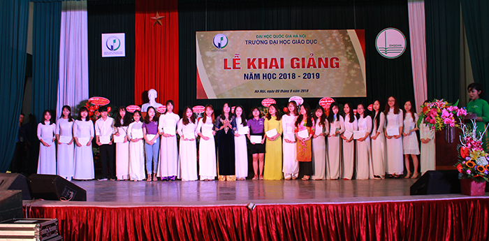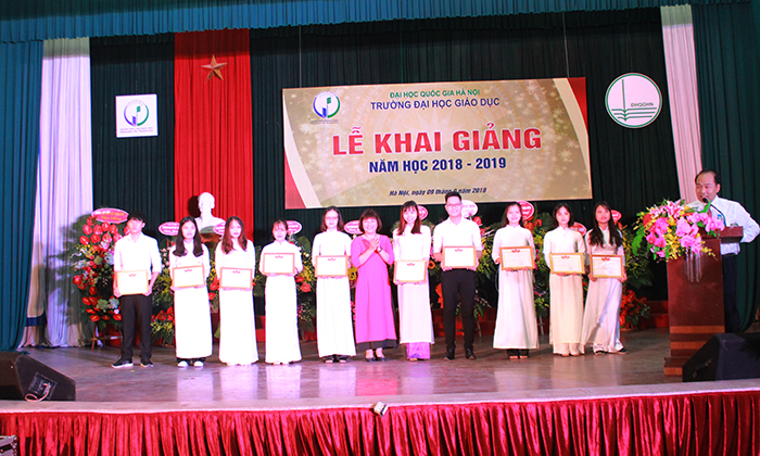 Tại Lễ khai giảng năm học mới, Trường ĐHGD đã trao thưởng cho các sinh viên có thành tích xuất sắc trong học tập, nghiên cứu khoa học, sinh viên có nhiều thành tích trong công tác Đoàn, lớp; sinh viên có hoàn cảnh khó khăn vươn lên trong năm học 2017-2018. Trường THPT Khoa học Giáo dục trực thuộc trường Đại học Giáo dục trao thưởng cho 03 sinh viên thủ khoa các nhóm ngành GD1, GD2, GD3 trị giá mỗi suất 8 triệu đồng.
