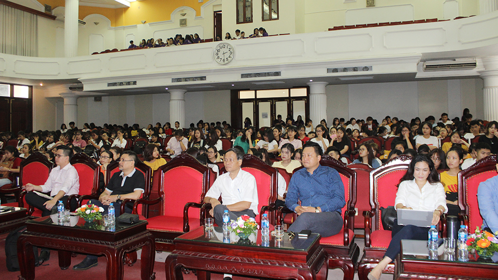 Chuyên gia GS.TS Nguyễn Minh Thuyết - Tổng chủ biên Chương trình Giáo dục phổ thông đã giới thiệu và chia sẻ cho sinh viên về những điểm mới trong chương trình giáo dục phổ thông, kế hoạch dạy học, lộ trình và điều kiện thực hiện chương trình.