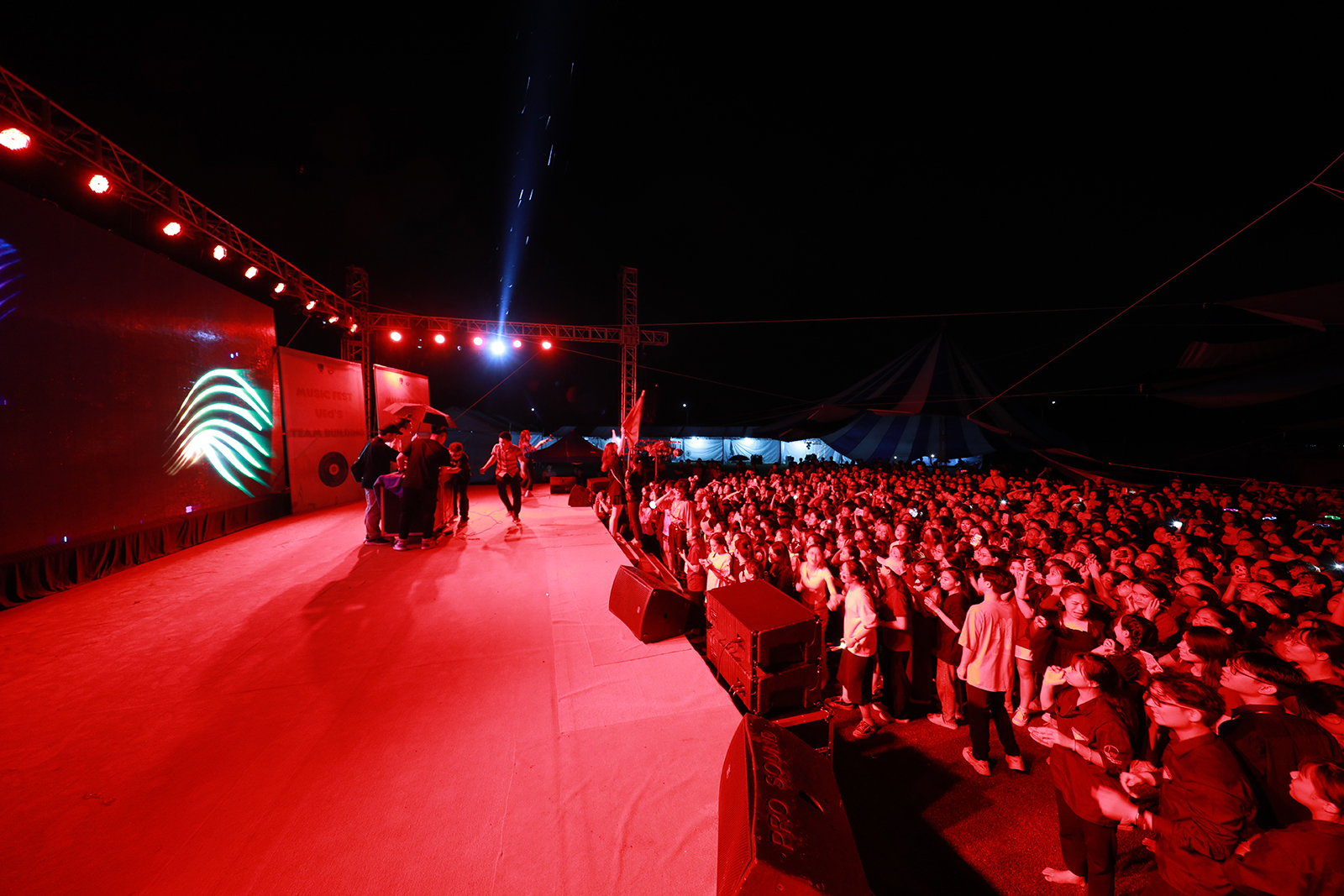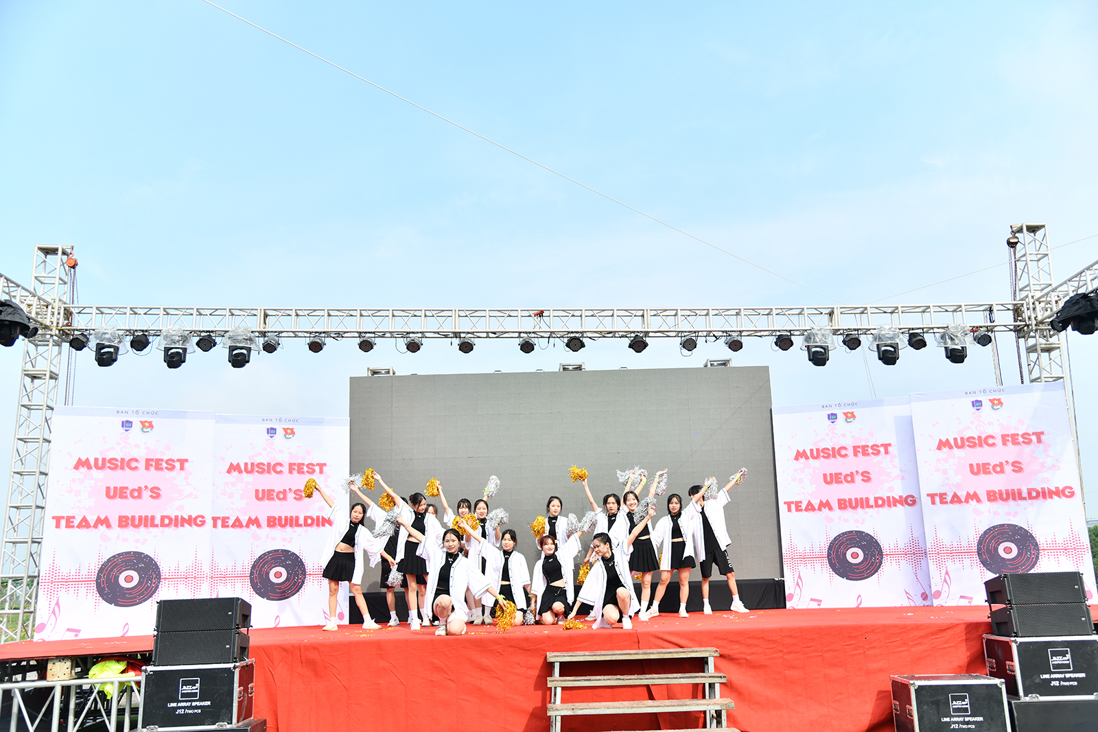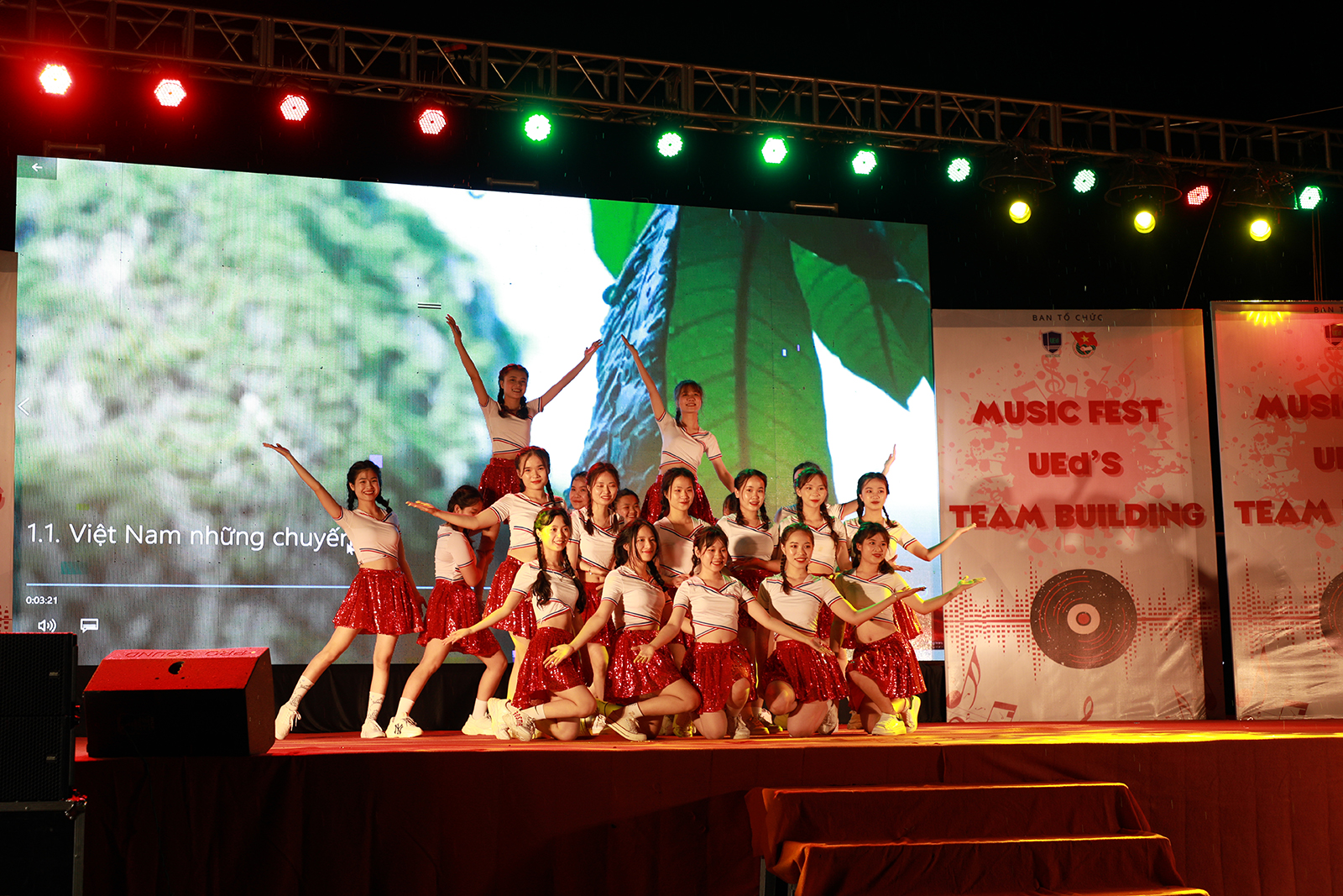 Sân khấu ngoài trời được thiết kế hoành tráng. Mở đầu là tiết mục văn nghệ...