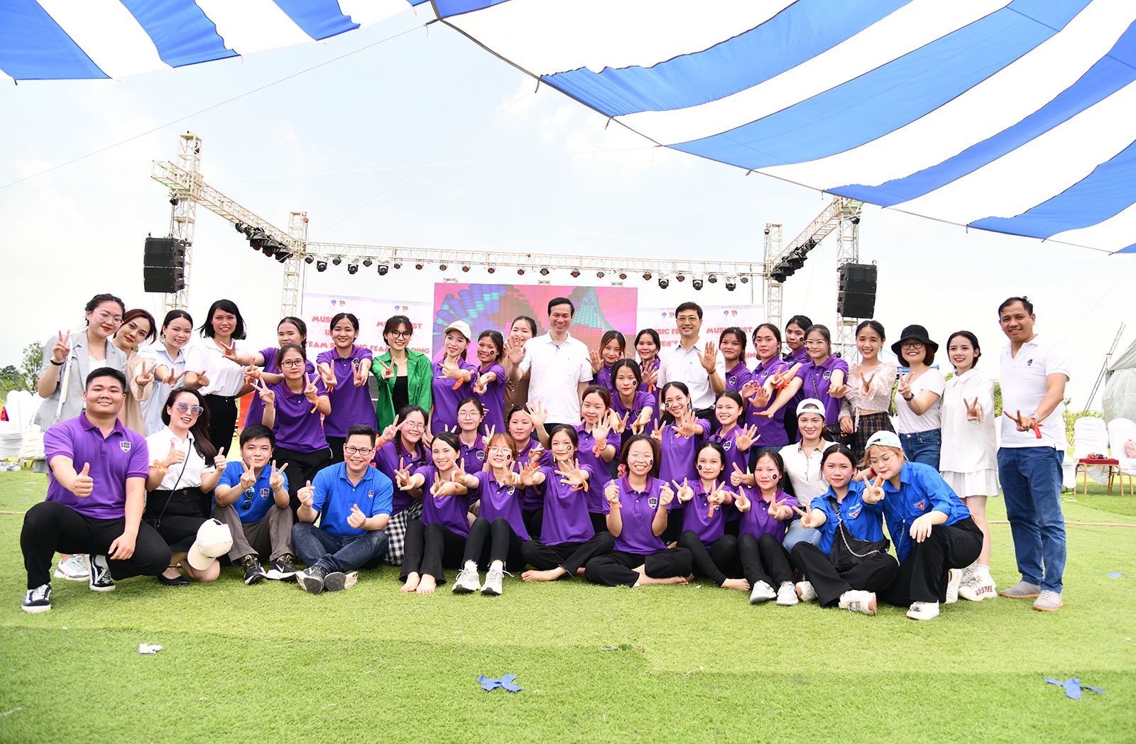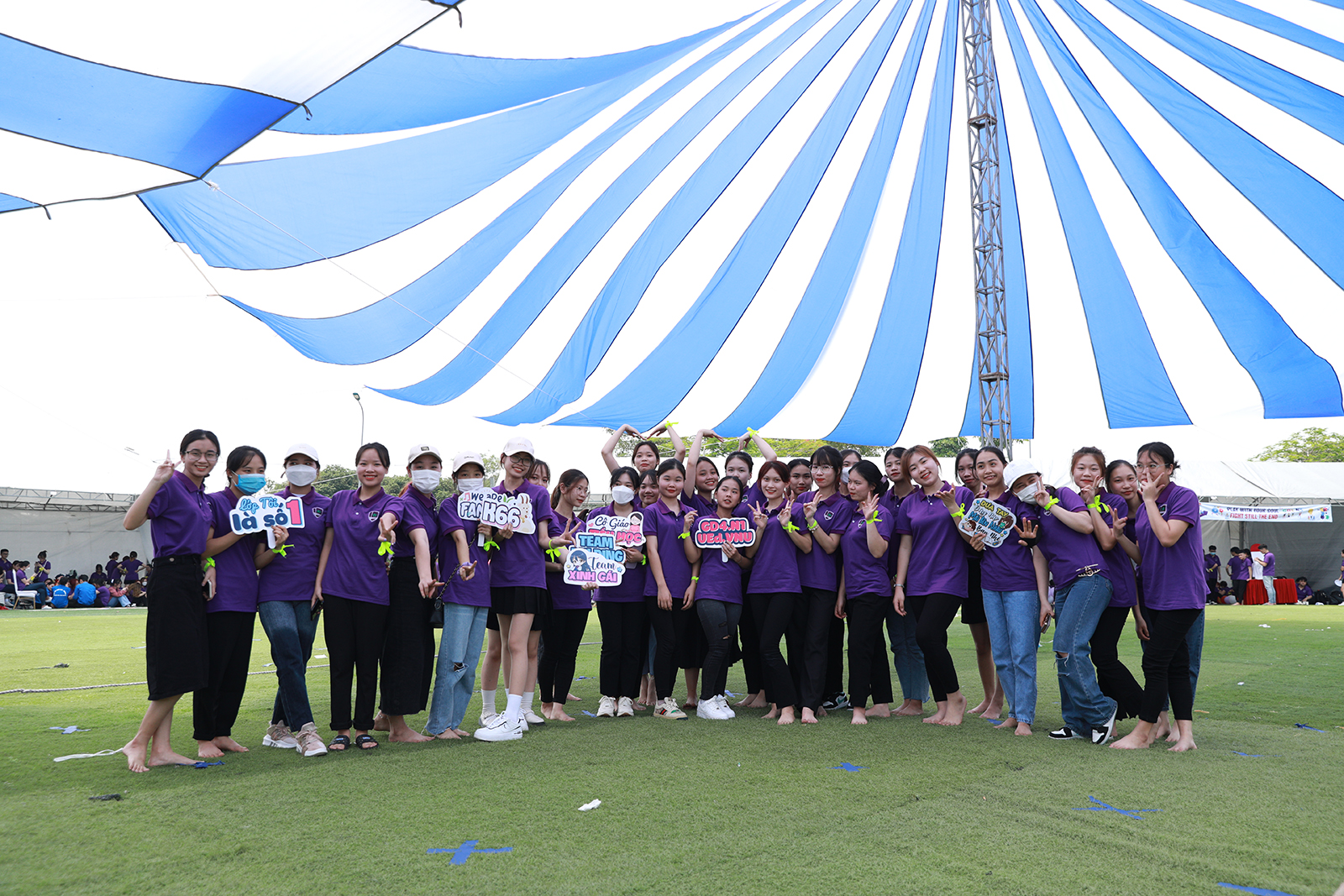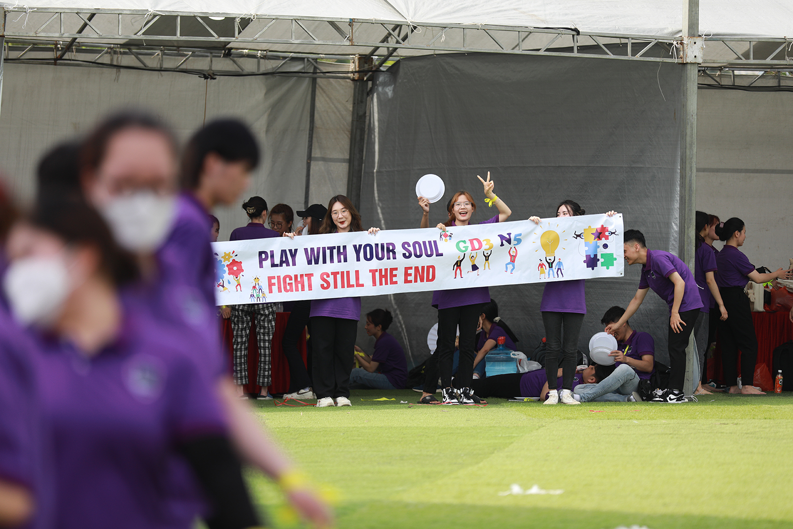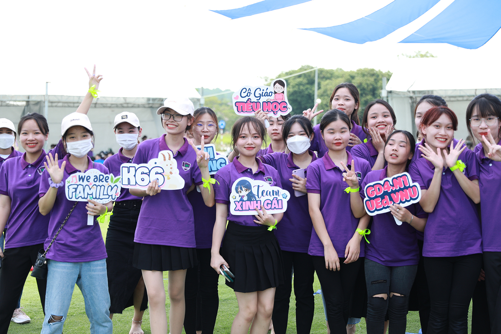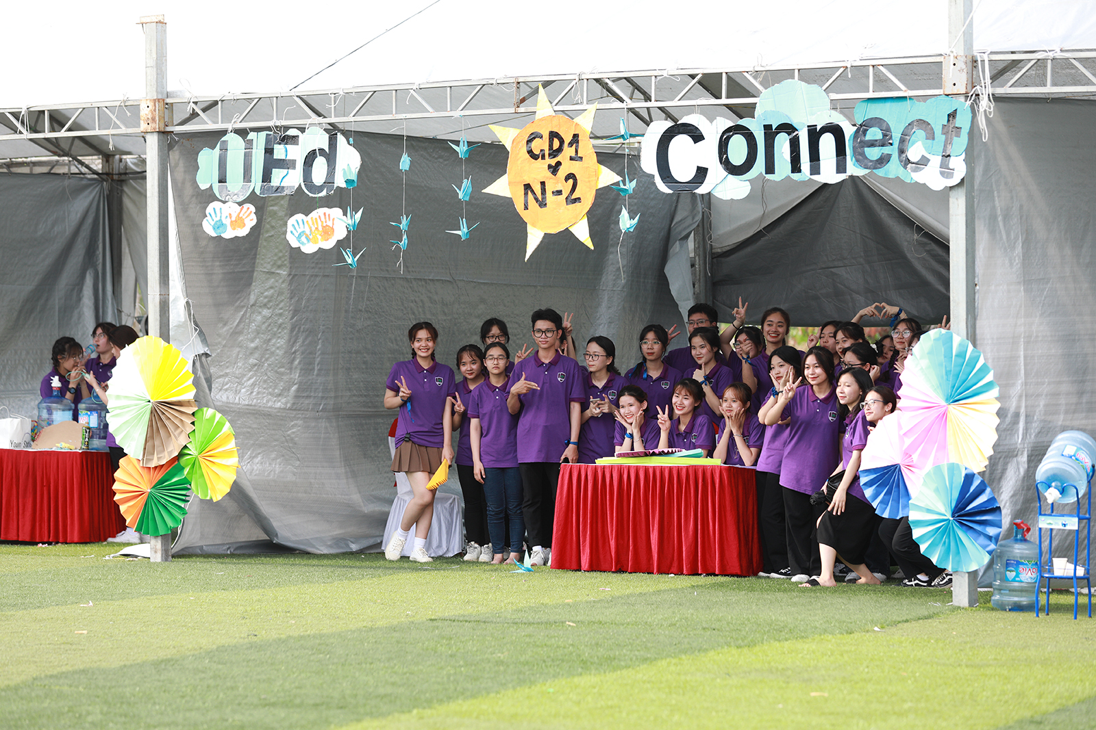 Lời chào hỏi từ những người bạn mới, những cái nắm tay, những cái ôm gặp mặt giữa những người bạn thân quen…tất cả đã mở ra một không khí thân mật và gắn kết. Chỉ chưa đầy một tiếng, “sắc tím” đã phủ sóng kín tại khuôn viên Đại học Quốc gia tại Hòa Lạc. Cái nóng của mùa hè cũng chẳng nóng bằng sức hút của các hoạt động sắp diễn ra.