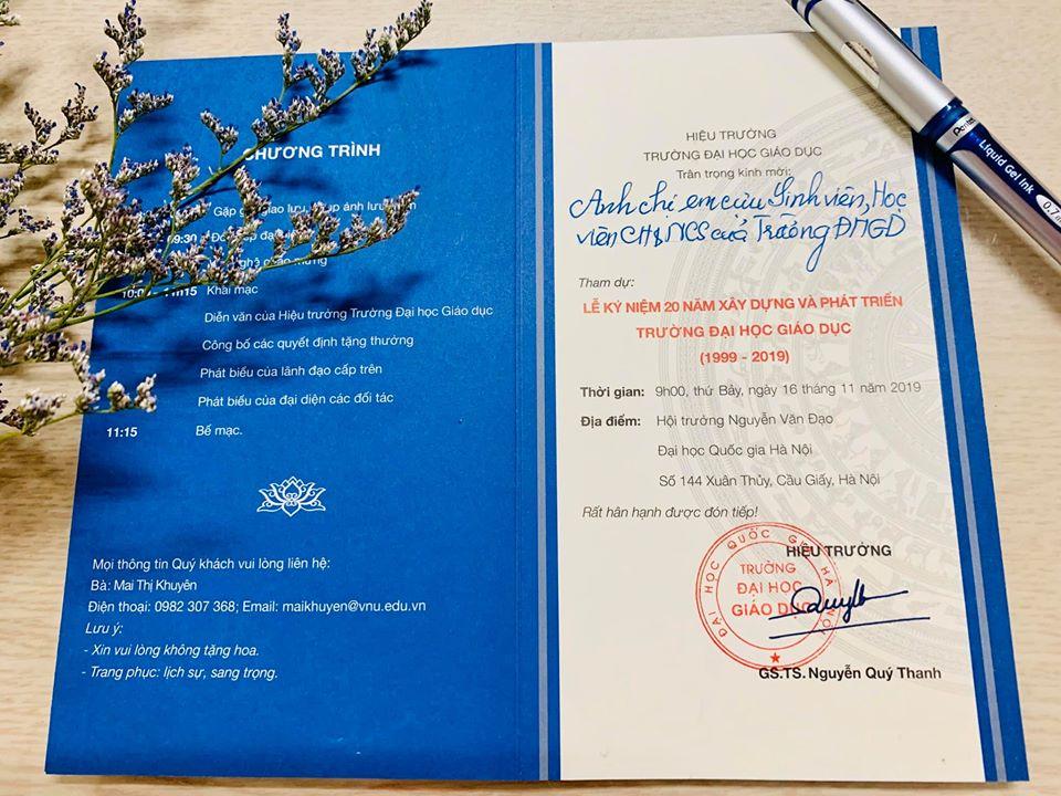 Trường Đại học Giáo dục trân trọng thông báo và kính mời Anh/ Chị cựu sinh viên, học viên cao học và NCS của Trường về dự Lễ kỷ niệm 20 năm xây dựng và phát triển Trường Đại học Giáo dục, với chuỗi các hoạt động cụ thể như sau: