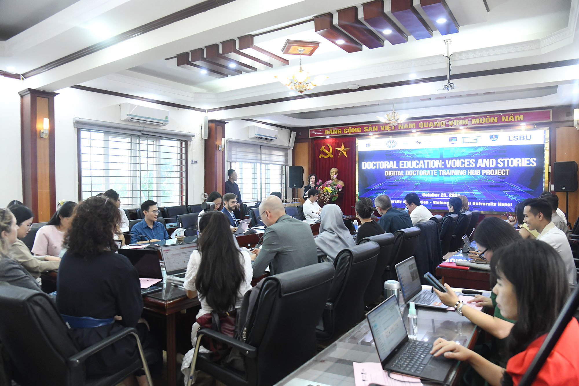 Ngày 23/10/2024, Trường Đại học Giáo dục đã đăng cai tổ chức Hội thảo quốc tế “Doctoral Education: Voices and Stories” trong khuôn khổ Dự án DigiDoc. Hội thảo có sự tham gia của các trường đại học trong mạng lưới DigiDoc bao gồm Đại học Birmingham City, Đại học Sư phạm TP.HCM và Đại học Nguyễn Tất Thành.