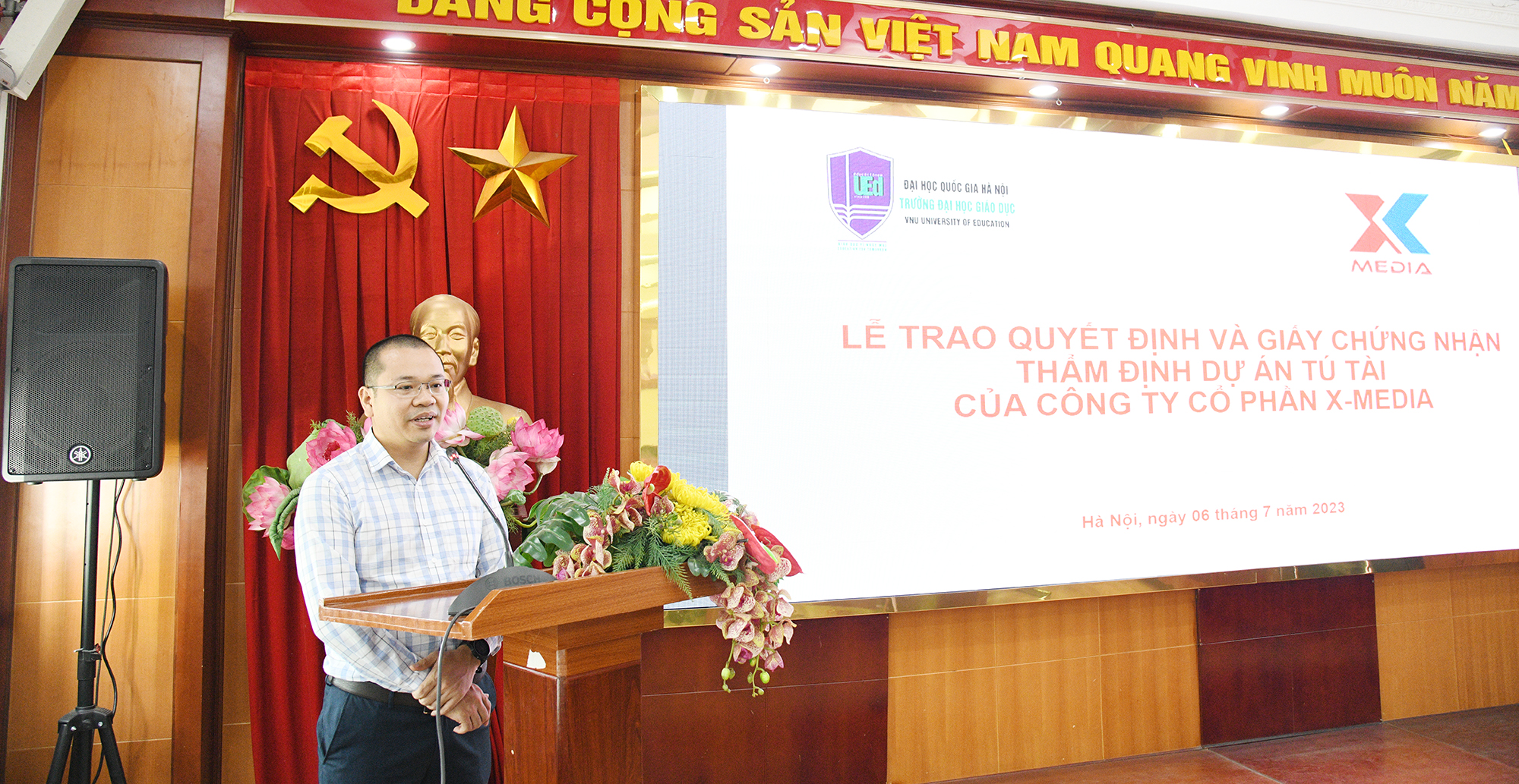 Sáng ngày 6/7, Trường Đại học Giáo dục - Đại học Quốc gia Hà Nội đã tổ chức Lễ Trao Quyết định và Giấy chứng nhận thẩm định dự án Tú Tài do Công ty Cổ phần X-Media xây dựng và phát triển.
