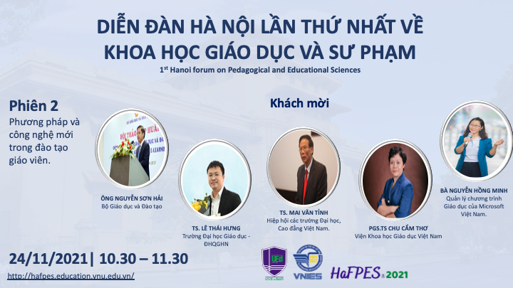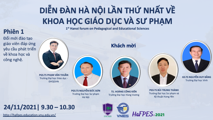 Diễn đàn Hà Nội lần thứ nhất về Khoa học Giáo dục và Sư phạm (Hafpes 2021) được Trường Đại học Giáo dục – ĐHQGHN và Viện Khoa học Giáo dục Việt Nam phối hợp tổ chức sẽ diễn ra vào ngày 24/11/2021.