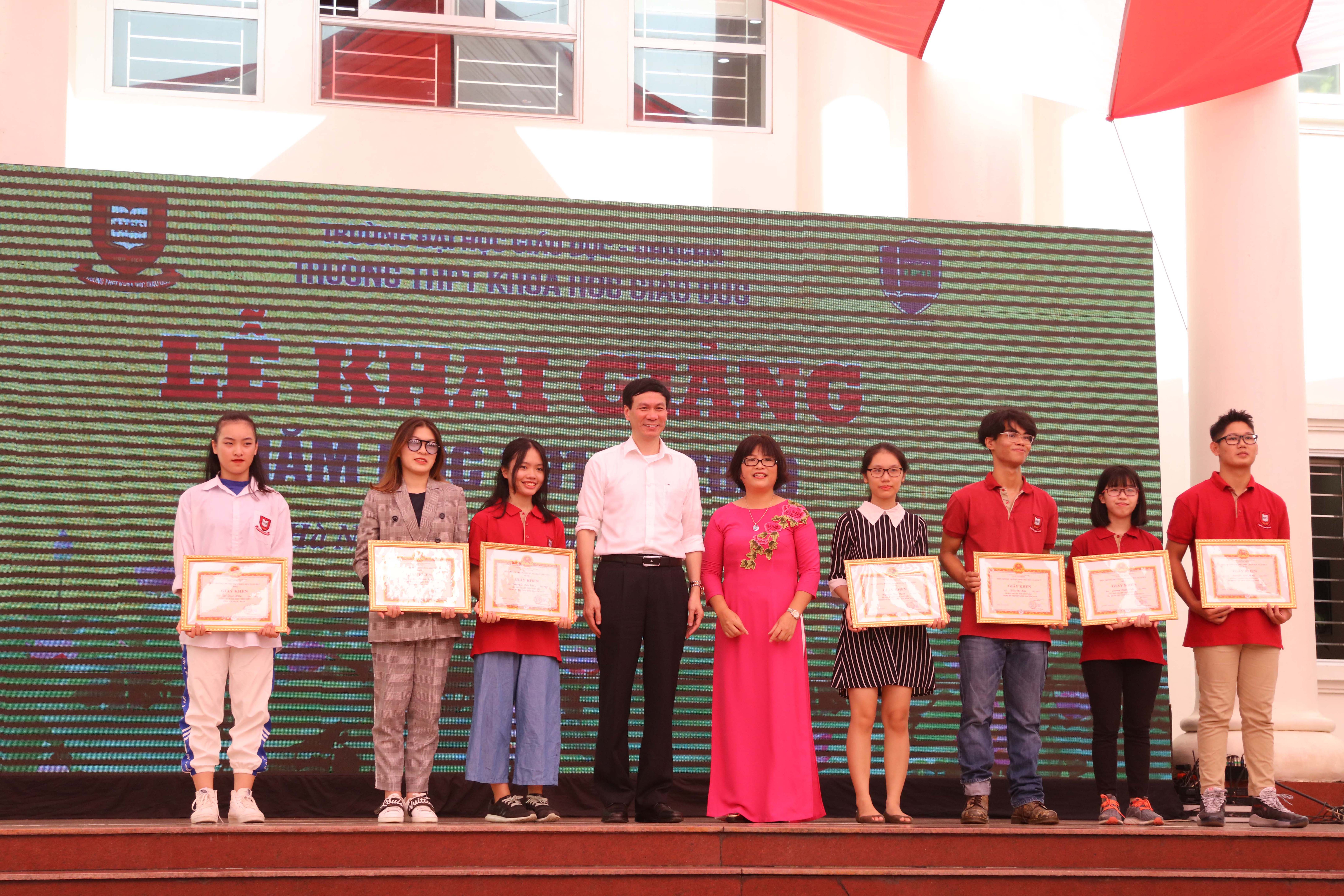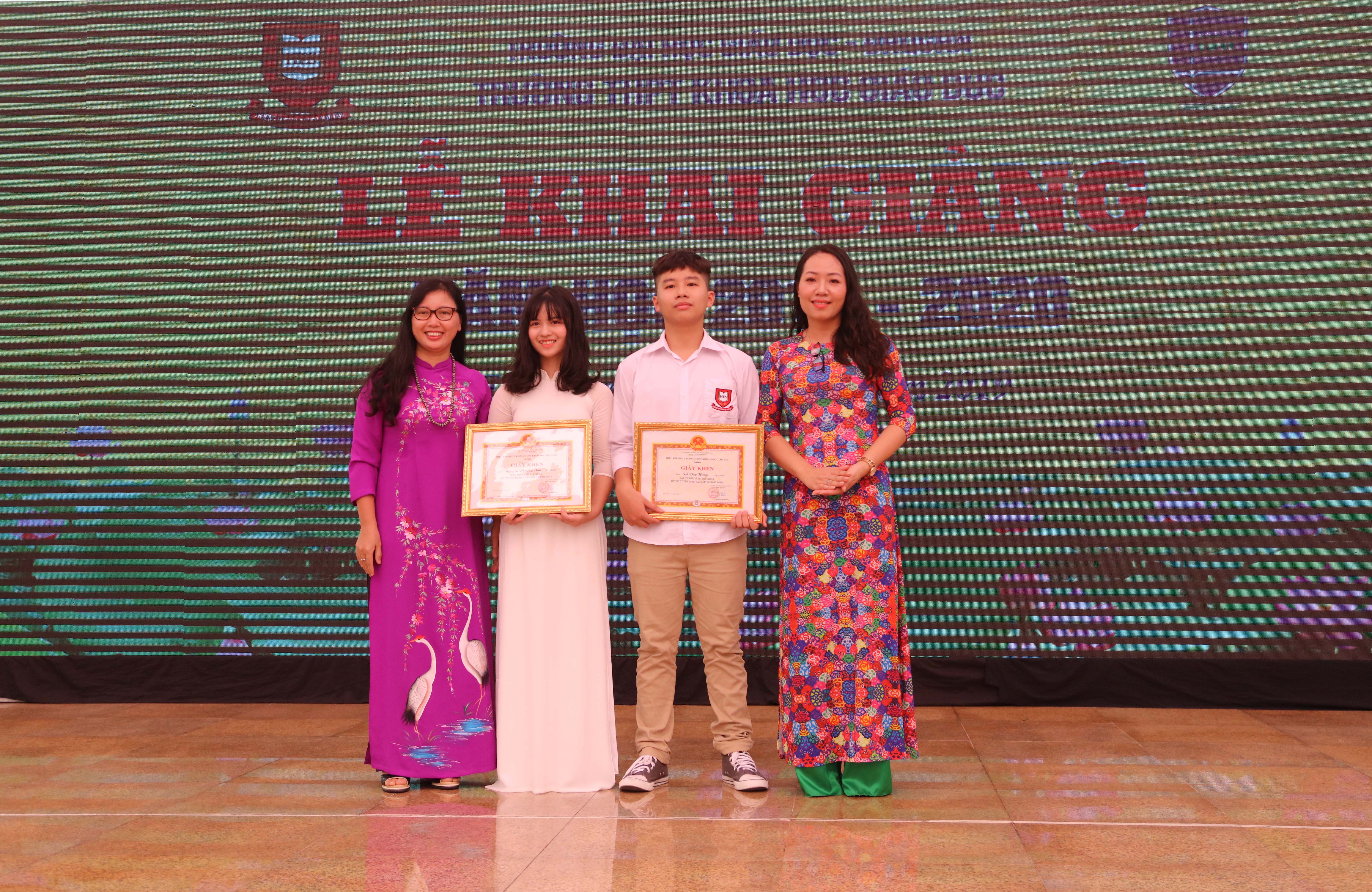 Nhân dịp này, Nhà trường đã vinh danh 5 học sinh khóa I đạt thành tích cao trong kì thi THPT Quốc gia, 2 học sinh tiêu biểu trong các hoạt động xã hội, phong trào văn nghệ niên khoá 2016 – 2019.