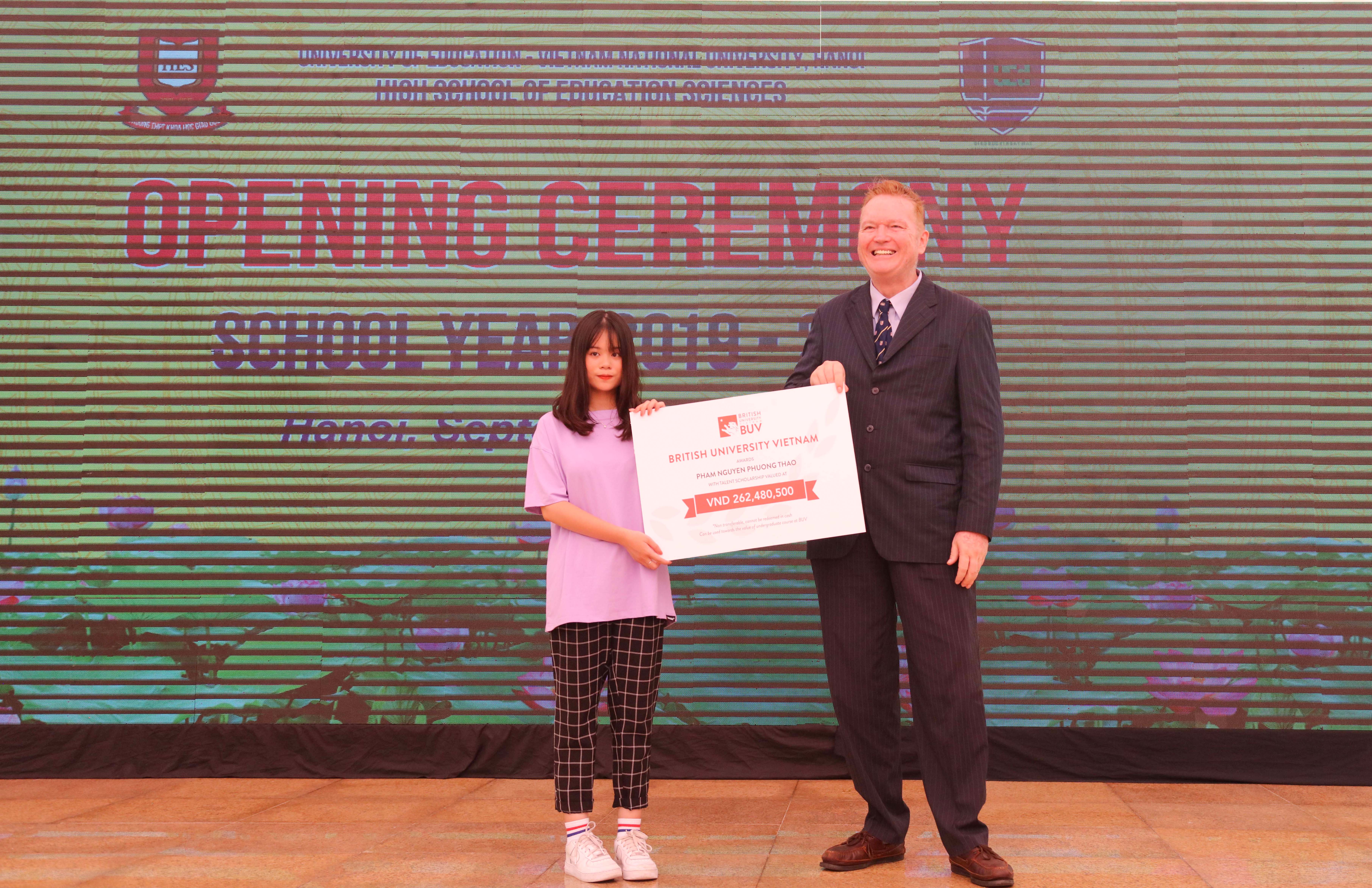 Cựu học sinh HES niên khóa 2016 – 2019 Phạm Nguyễn Phương Thảo được BIUV trao tặng học bổng 30% học phí.