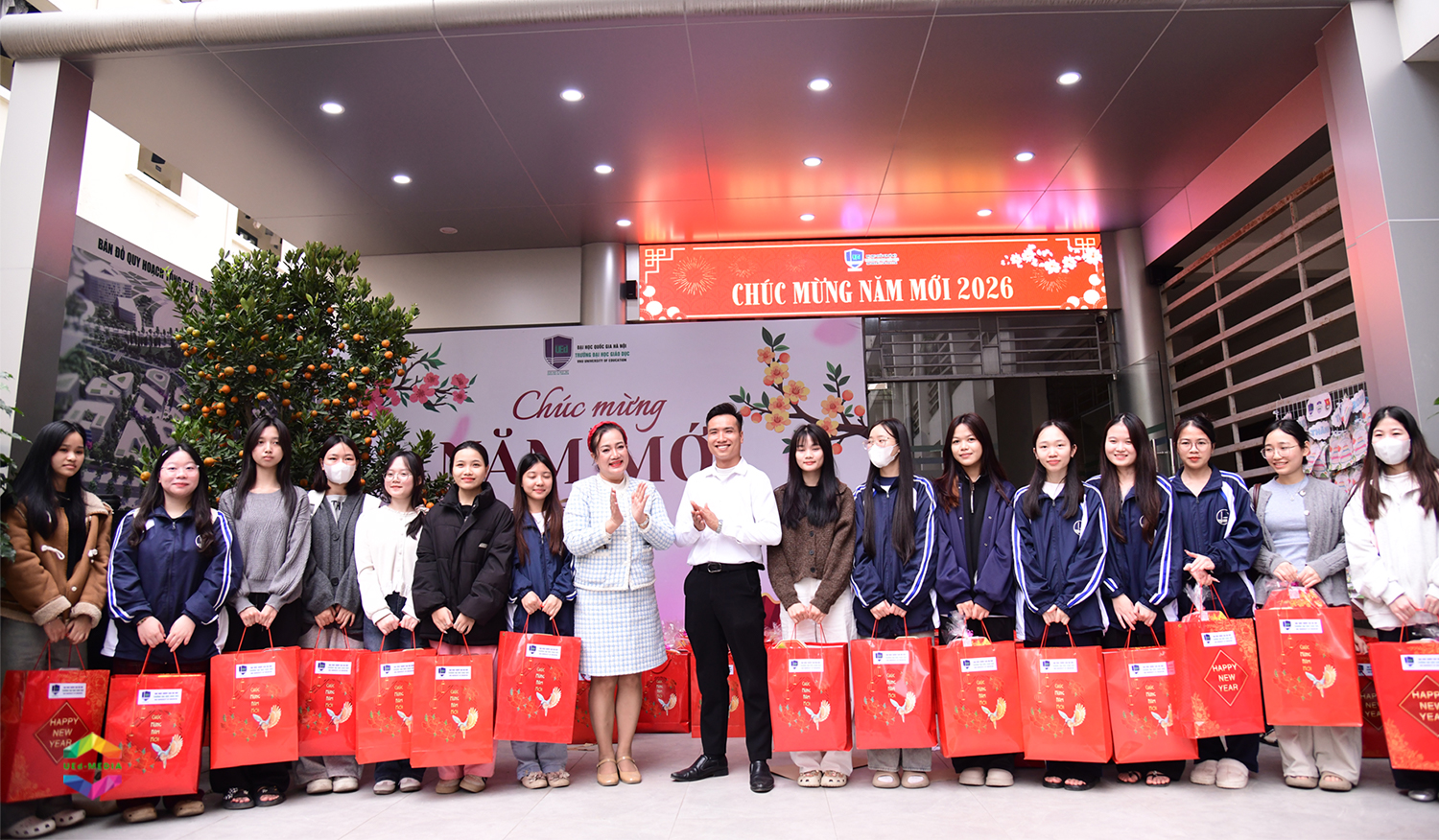 Trong hai ngày 04 và 05/02/2026, Trường Đại học Giáo dục đã tổ chức các hoạt động trao quà Tết cho sinh viên tại Tòa C0, 182 Lương Thế Vinh (Thanh Xuân, Hà Nội) và Trung tâm Giáo dục Quốc phòng và An ninh tại Hòa Lạc.