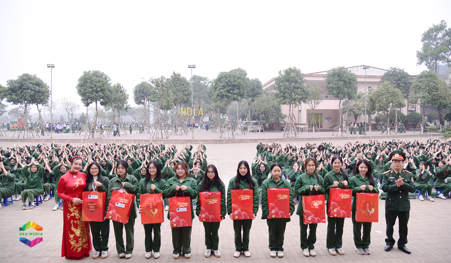 Tiếp nối chuỗi hoạt động, chiều ngày 05/02/2026, Trường Đại học Giáo dục tổ chức chương trình trao quà thăm hỏi cho sinh viên đang học tập tại Trung tâm Giáo dục Quốc phòng và An ninh tại Hòa Lạc. Nhà trường đã dành gần 30 suất quà Tết gửi tới các sinh viên có hoàn cảnh khó khăn, luôn nỗ lực, cố gắng trong học tập và rèn luyện.