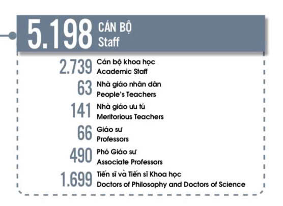 Năm 2023, ĐHQGHN có 5.198 cán bộ, với đội ngũ giáo sư, phó giáo sư, tiến sĩ và tiến sĩ khoa học hùng hậu.