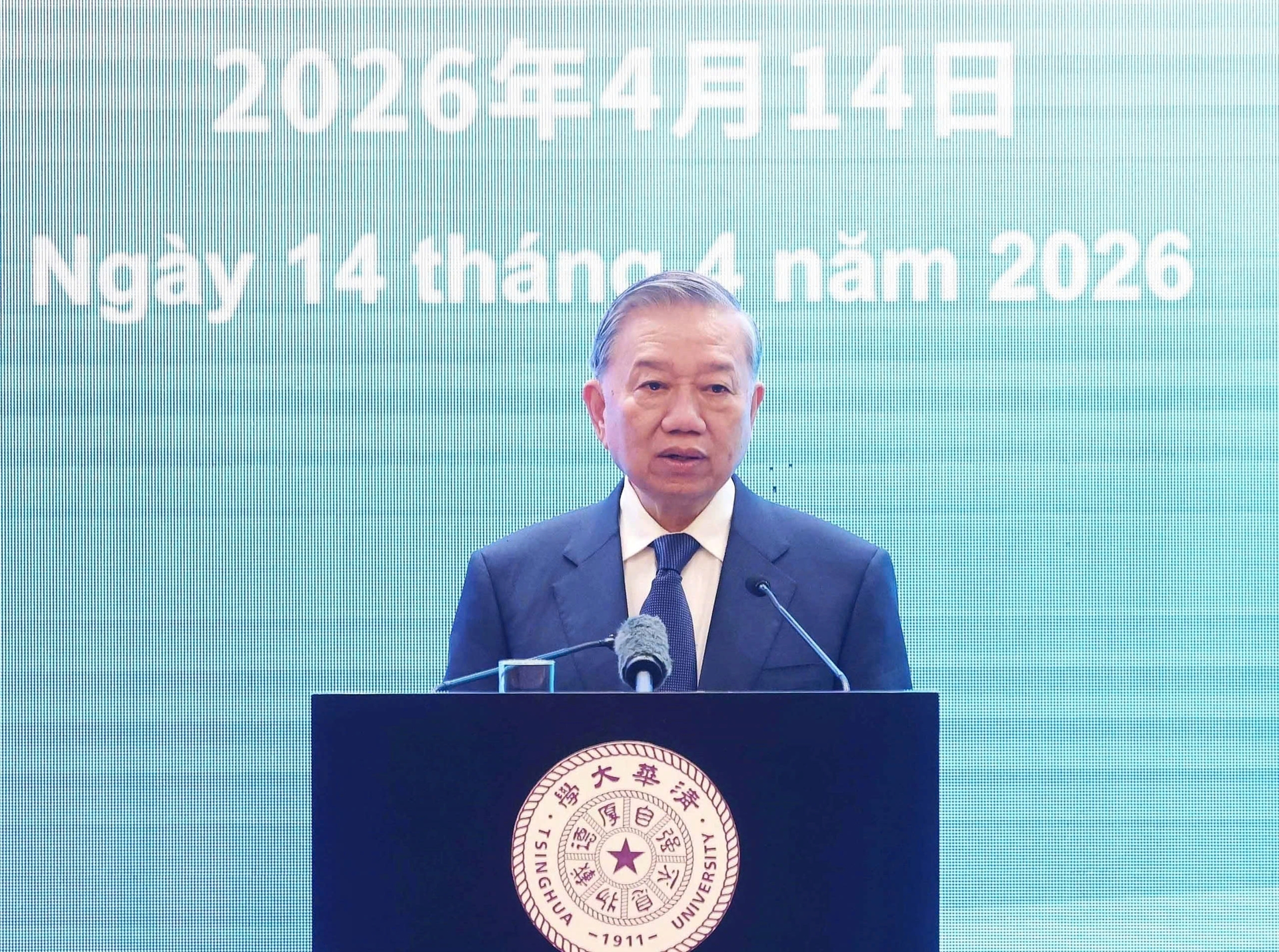 Tổng Bí thư, Chủ tịch nước Tô Lâm phát biểu chính sách tại Đại học Thanh Hoa. (Ảnh: Thống Nhất/TTXVN)