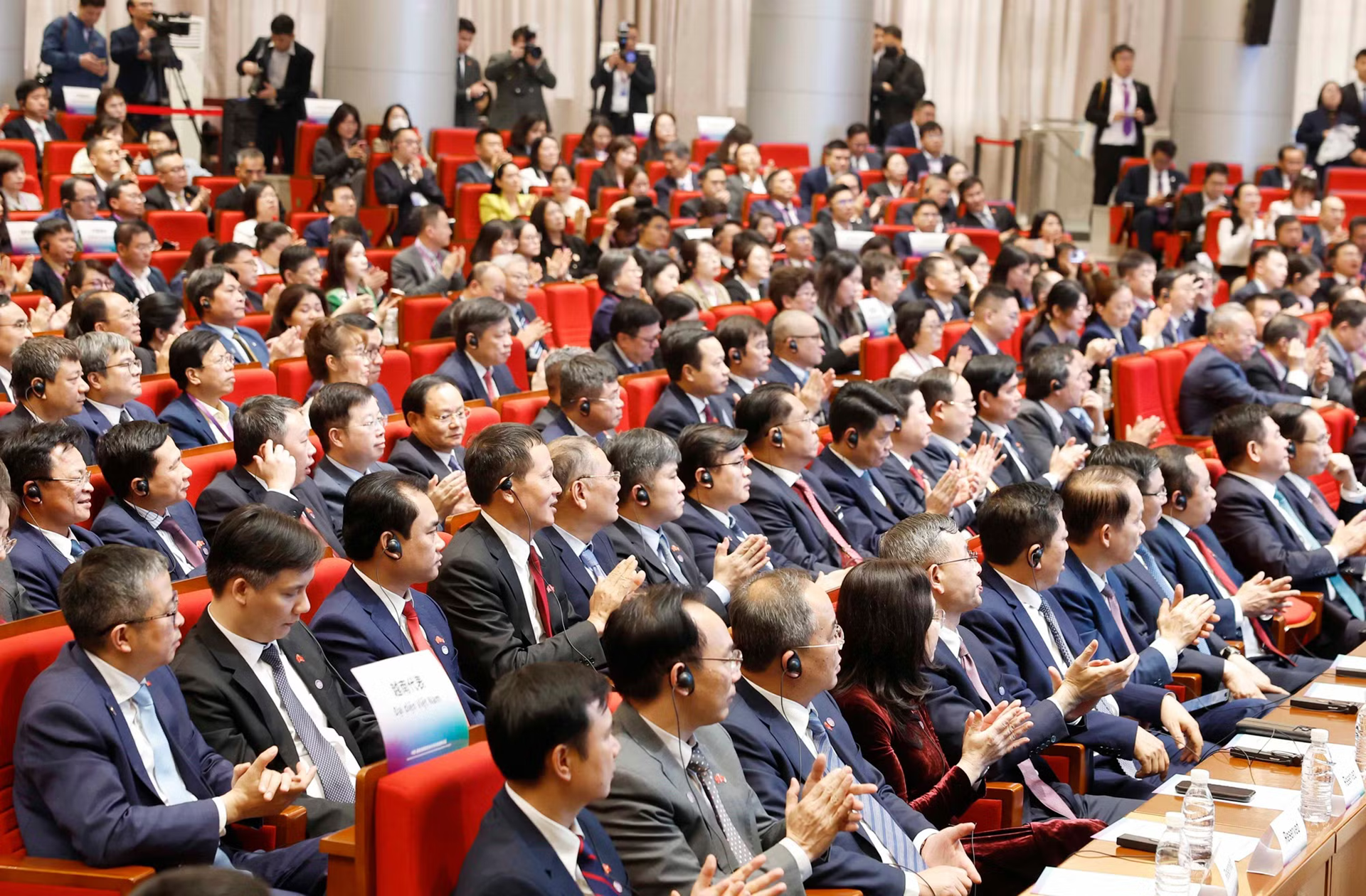 Các đại biểu tham dự buổi phát biểu chính sách của Tổng Bí thư, Chủ tịch nước Tô Lâm tại Đại học Thanh Hoa. (Ảnh: Thống Nhất/TTXVN)