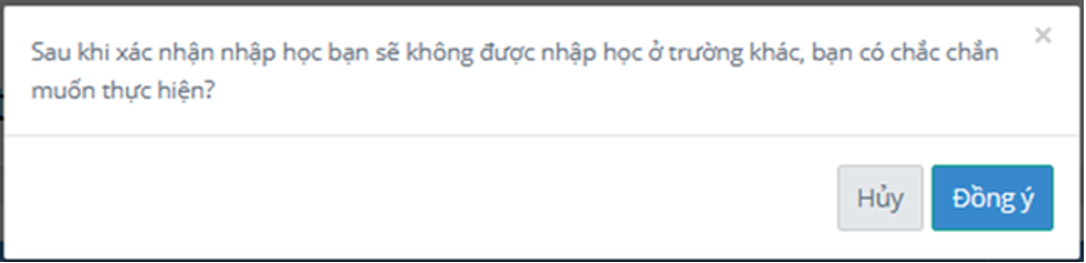 Bước 5: Nhấn Đồng ý để hoàn thành việc xác nhận nhập học.